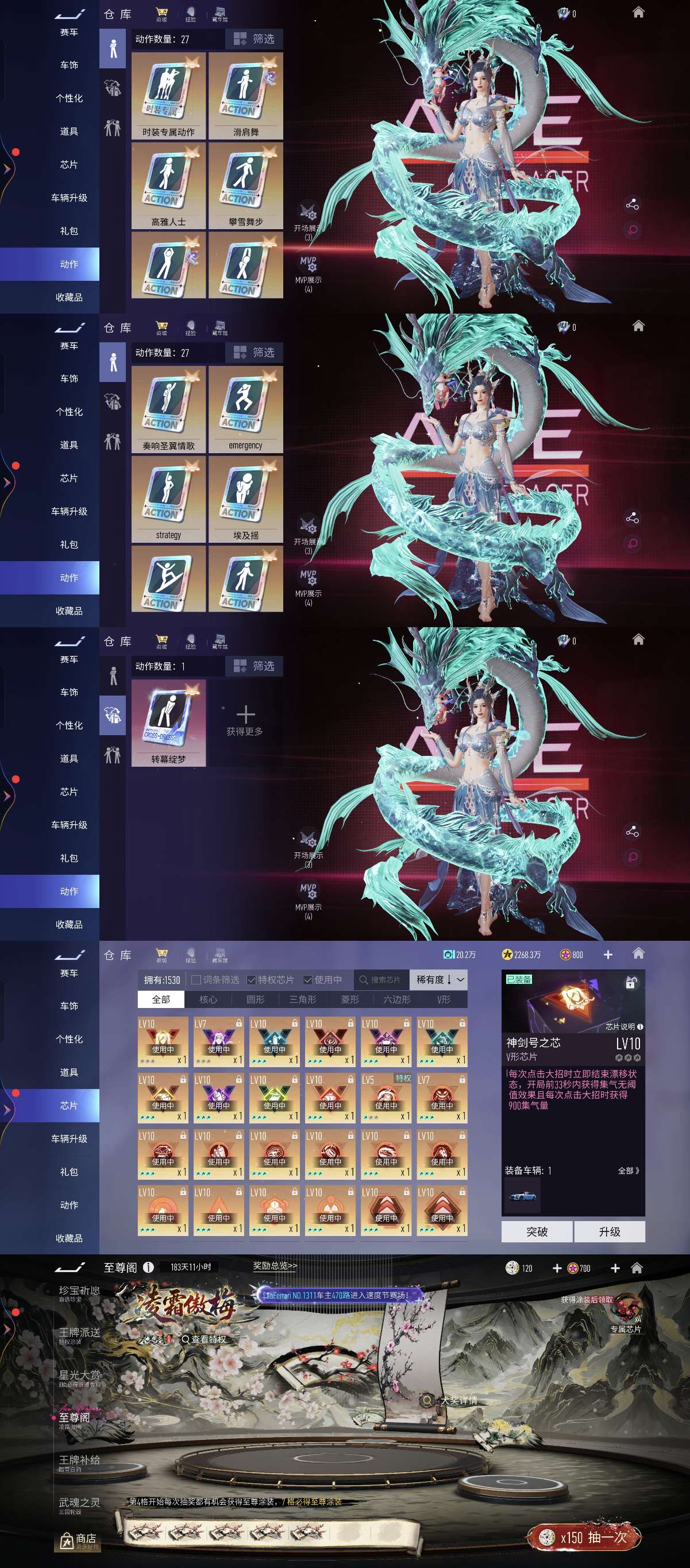 王牌竞速vivo渠道 v12 纯充值7.4w+ 165辆车 毒药(带紫波皮) 圣骑士4级神剑号7级猫