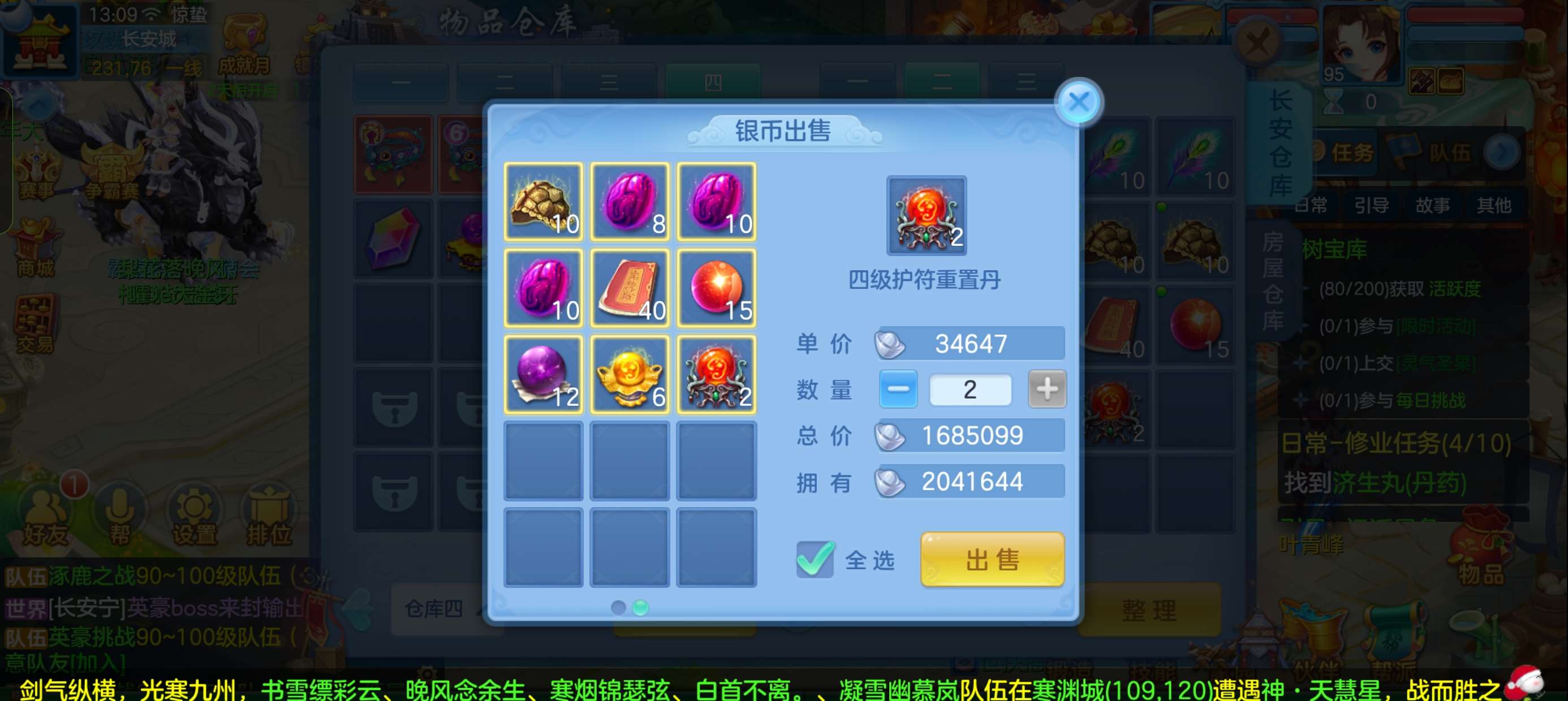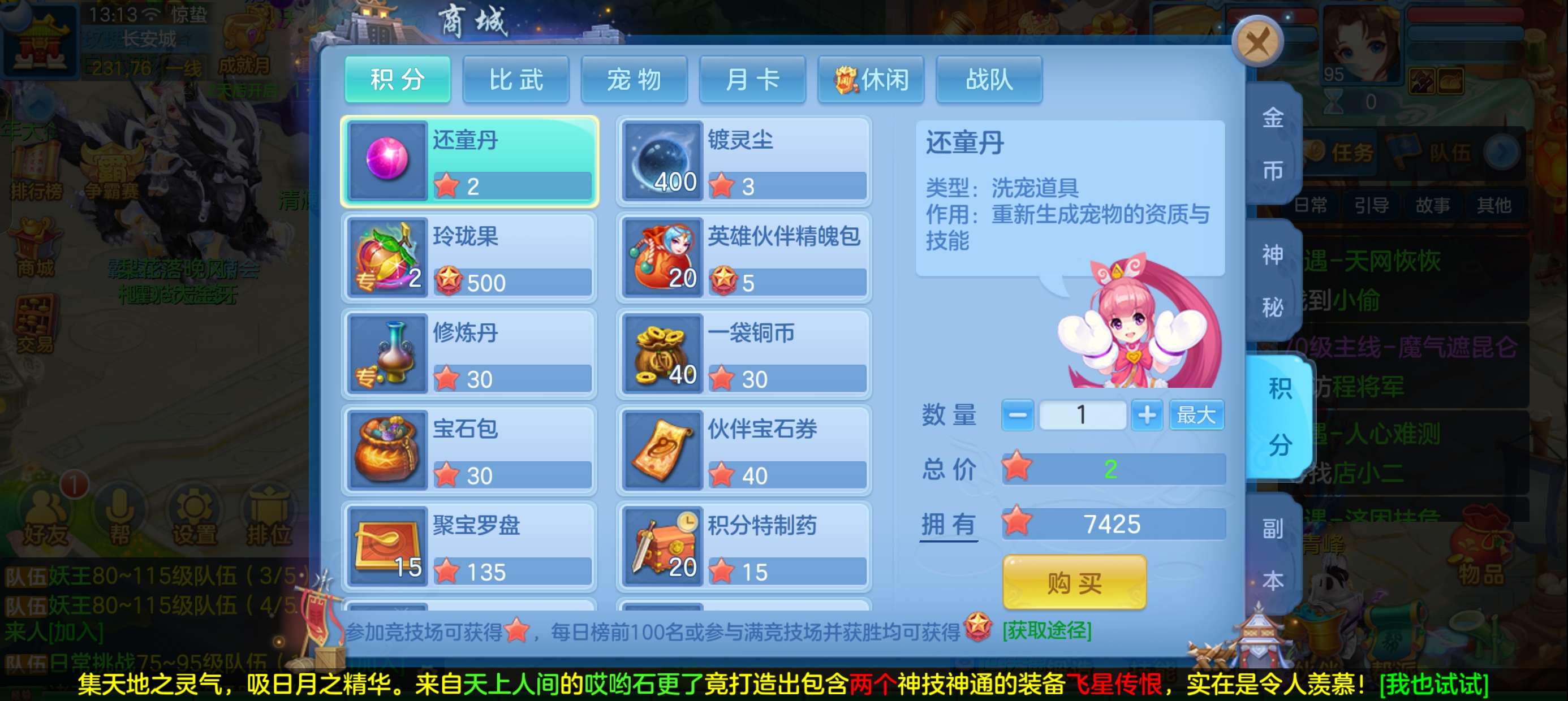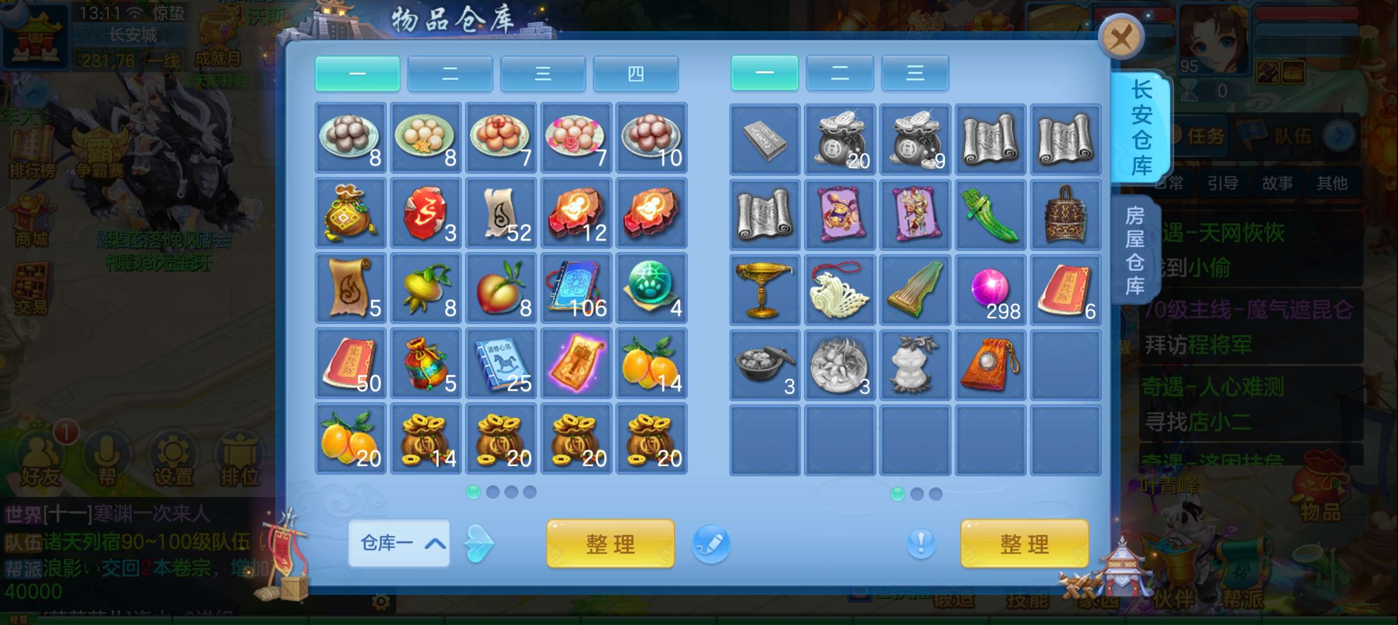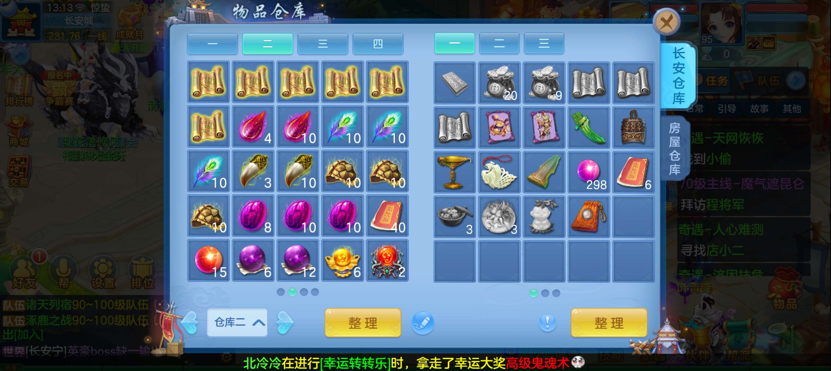 45个元宵,5张通灵符,3800还童丹,卡95满经验,目前370万银,每天都玩