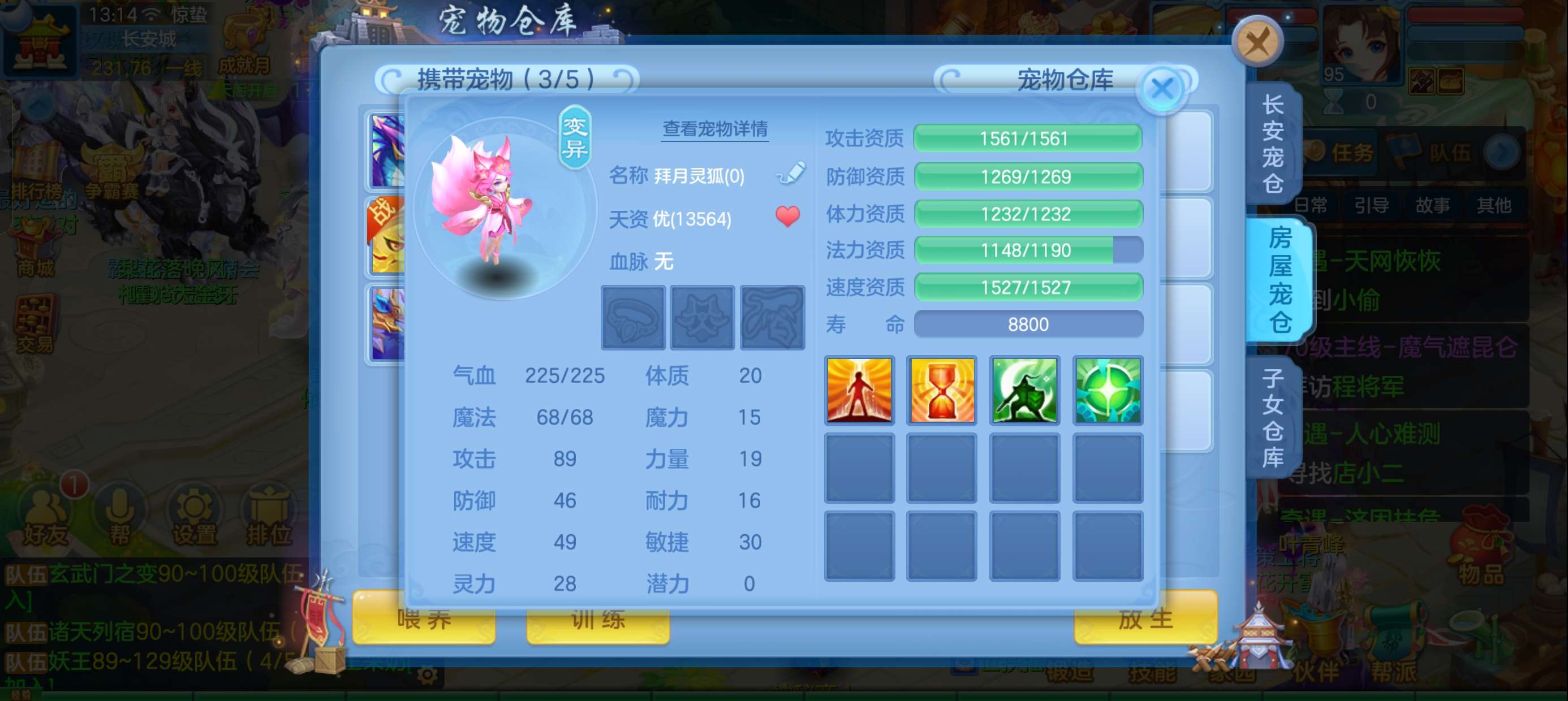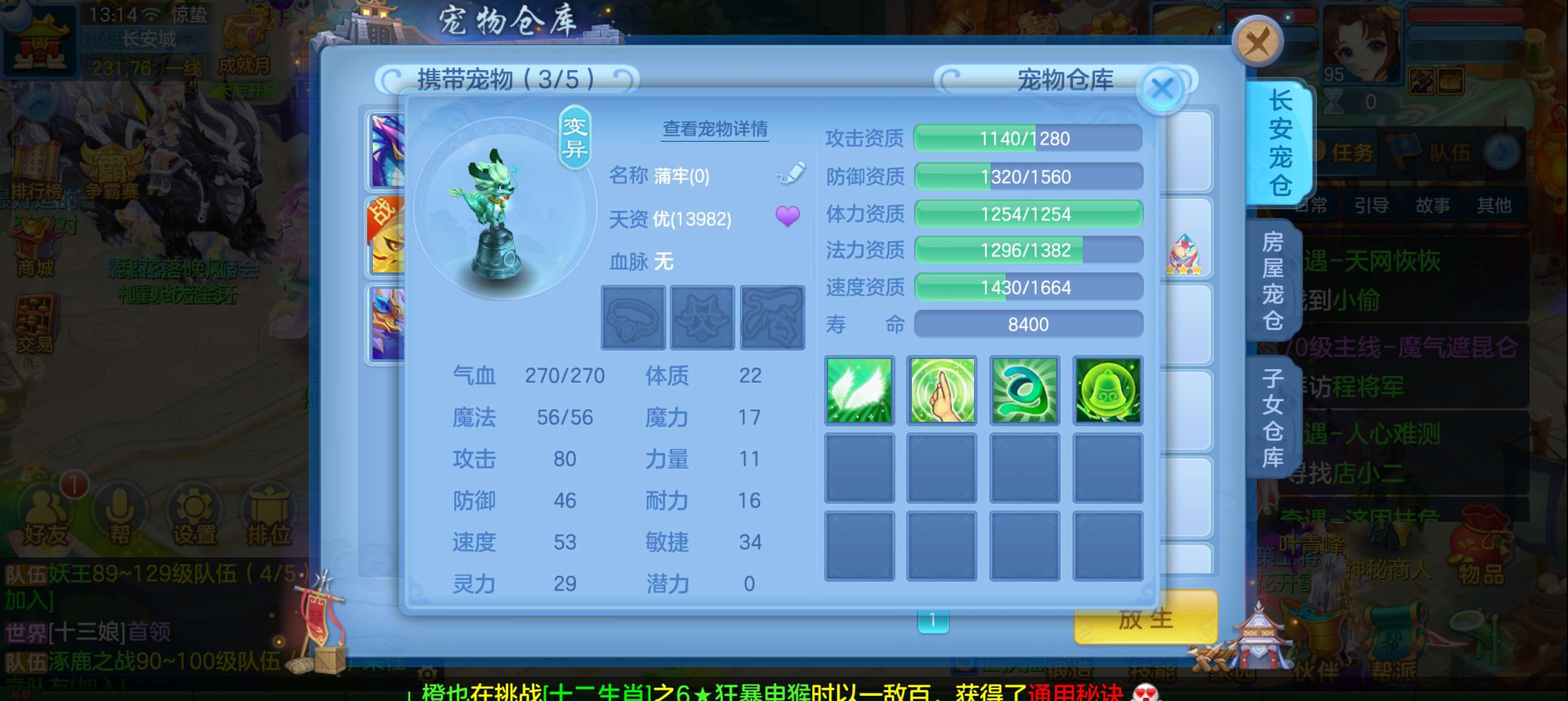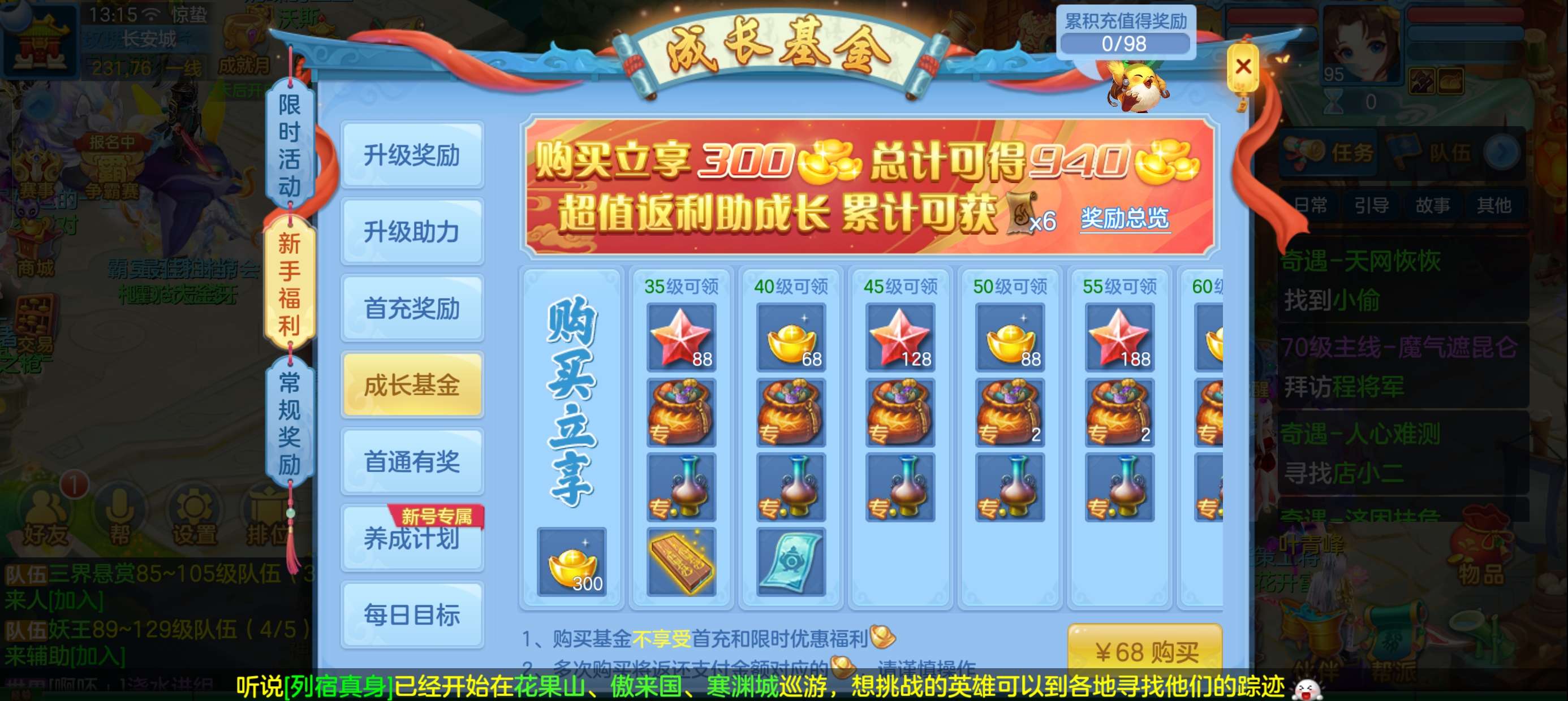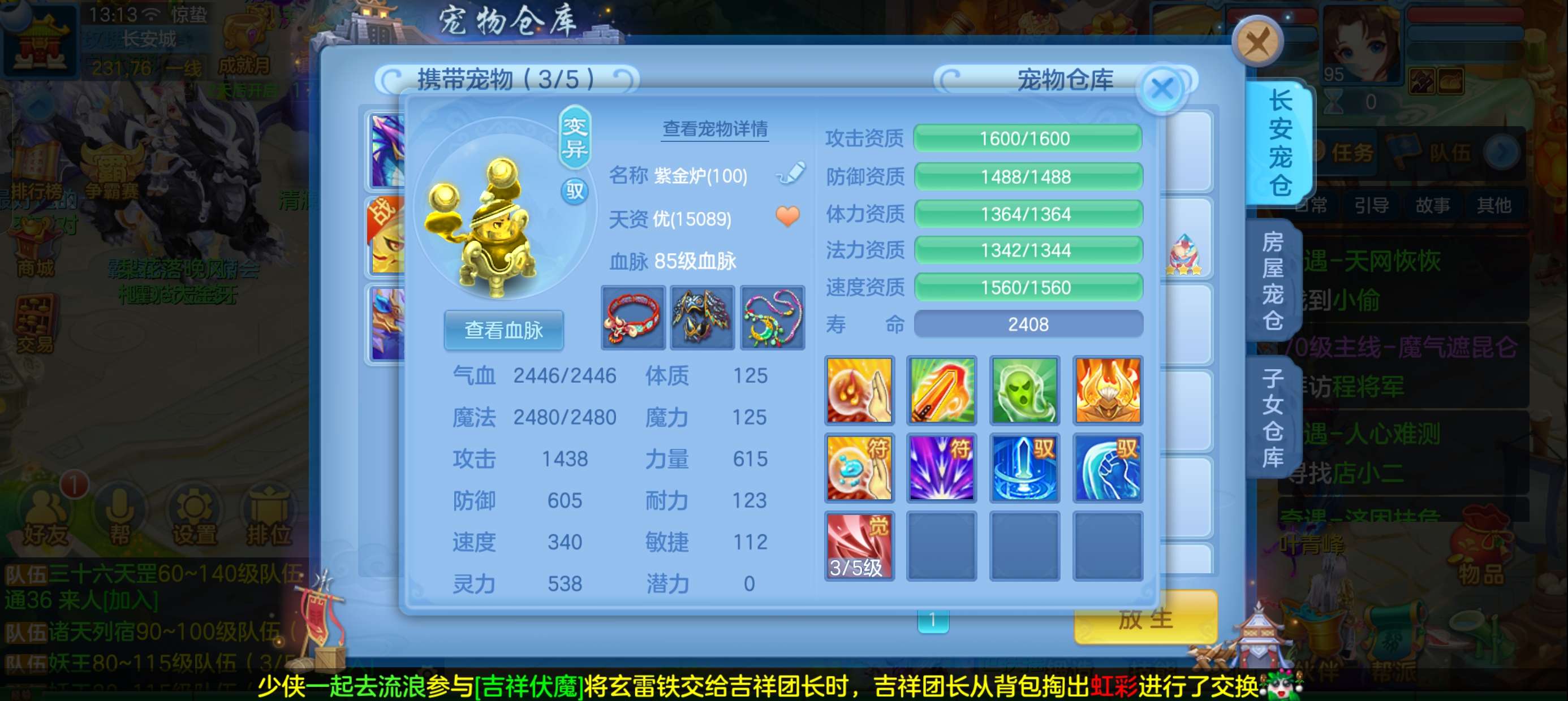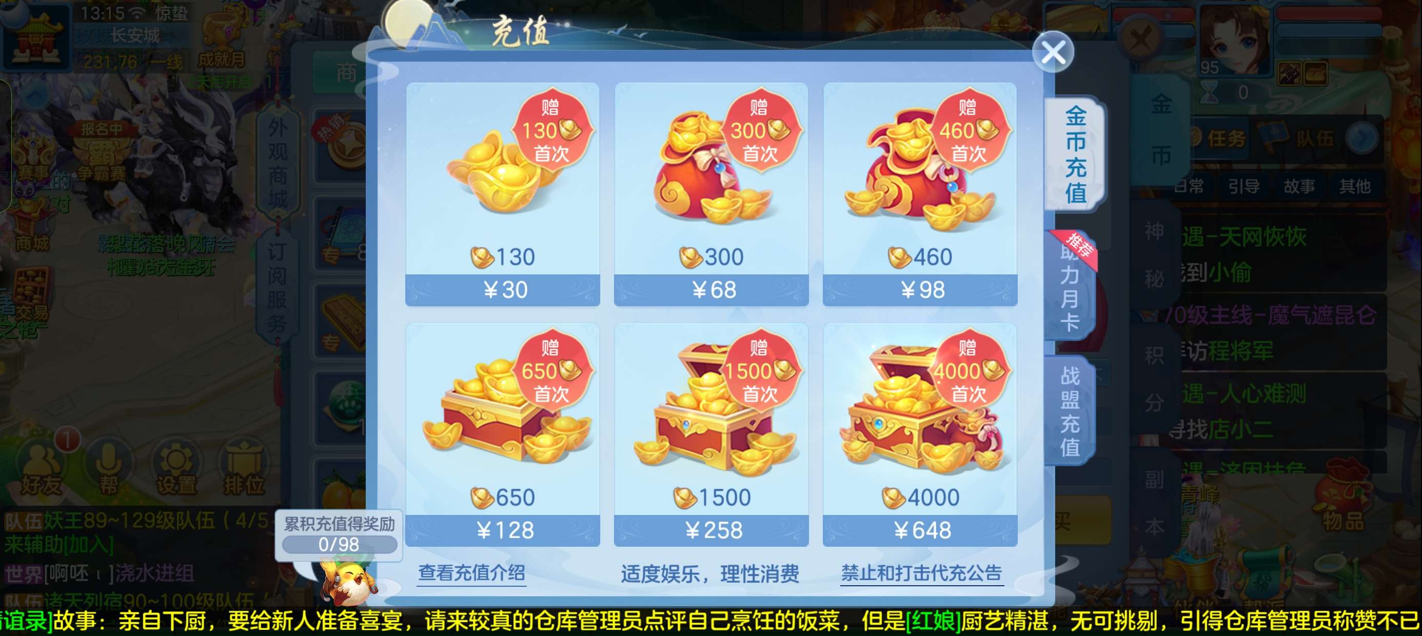 45个元宵,5张通灵符,3800还童丹,卡95满经验,目前370万银,每天都玩