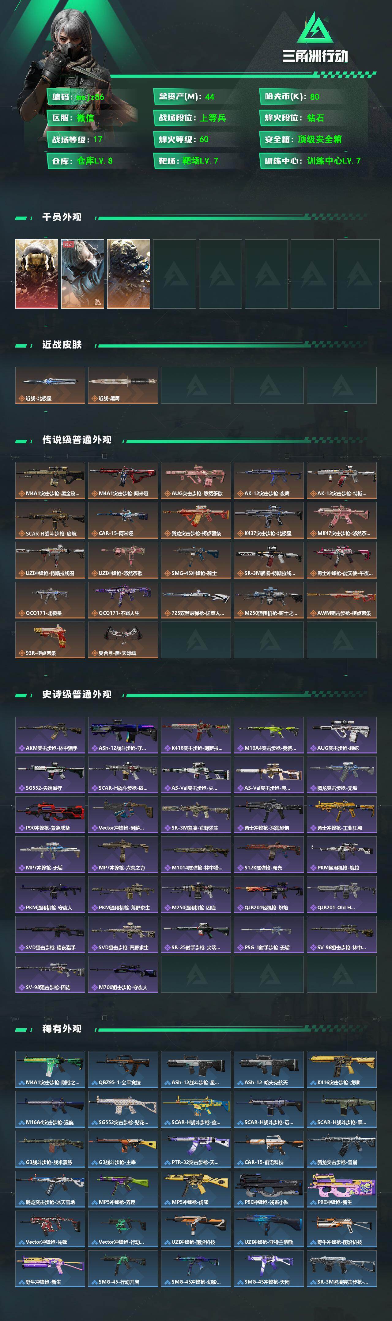 【msjz86】44m总资产-80k哈夫币-60烽火等级-钻石-17战场等级-上等兵