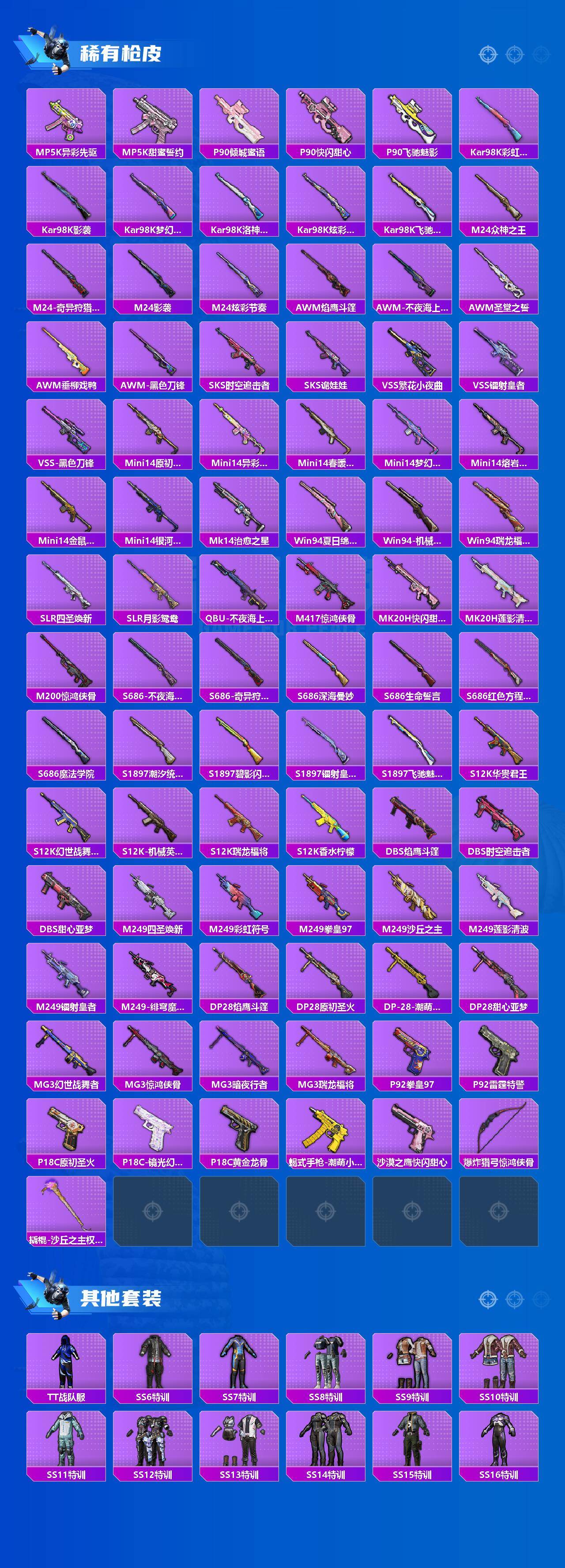 无敌战神框-1神装-9粉装-17特效枪-7载具-6粉色飞行器-105681热力值-11王牌印记-210套装-269枪皮