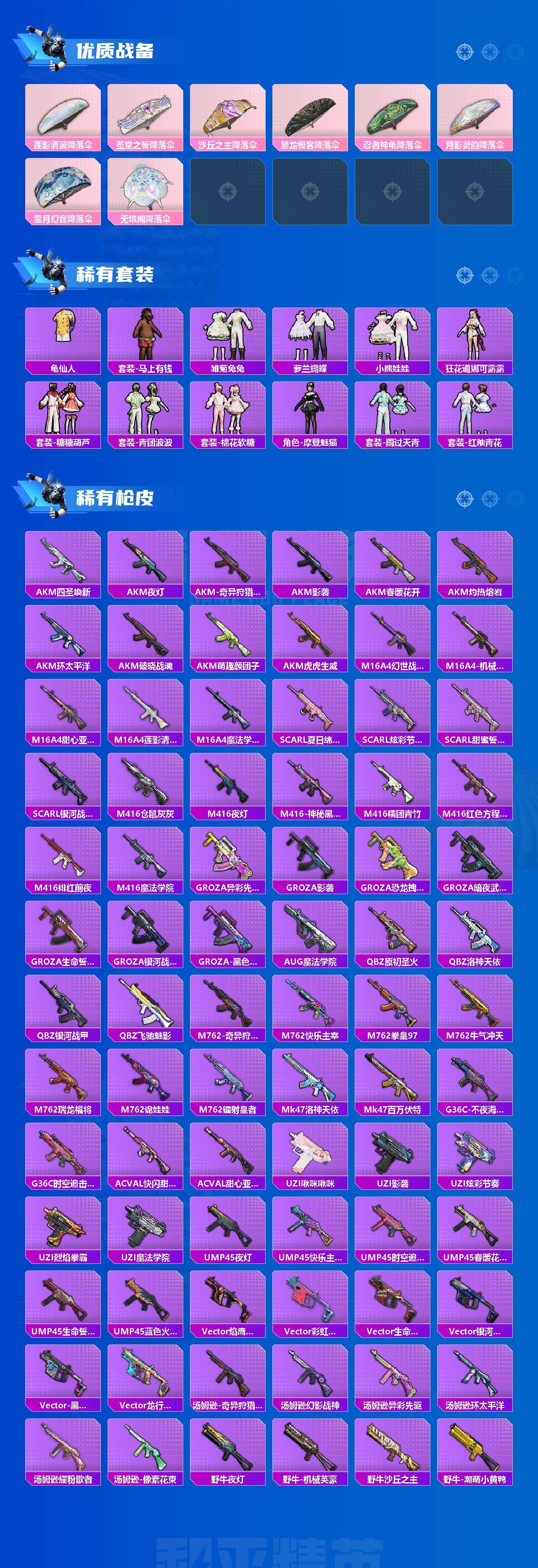 【热门品类】:粉装-雪国幻梦,粉装-梦幻火箭,套装-浪漫天命,套装-赤蝎幽灵,套装-都市猎人,套装-派对舞王,套装-小丑鱼,套装-奇异狩猎者,角色-军刀雅典娜,套装-胖达圆圆,角色-忠猛周仓,角色-忠真马岱,套装-龟仙人,套装-潮萌小黄鸭,套装-暗影哥特,撬棍-龙胆亮银枪