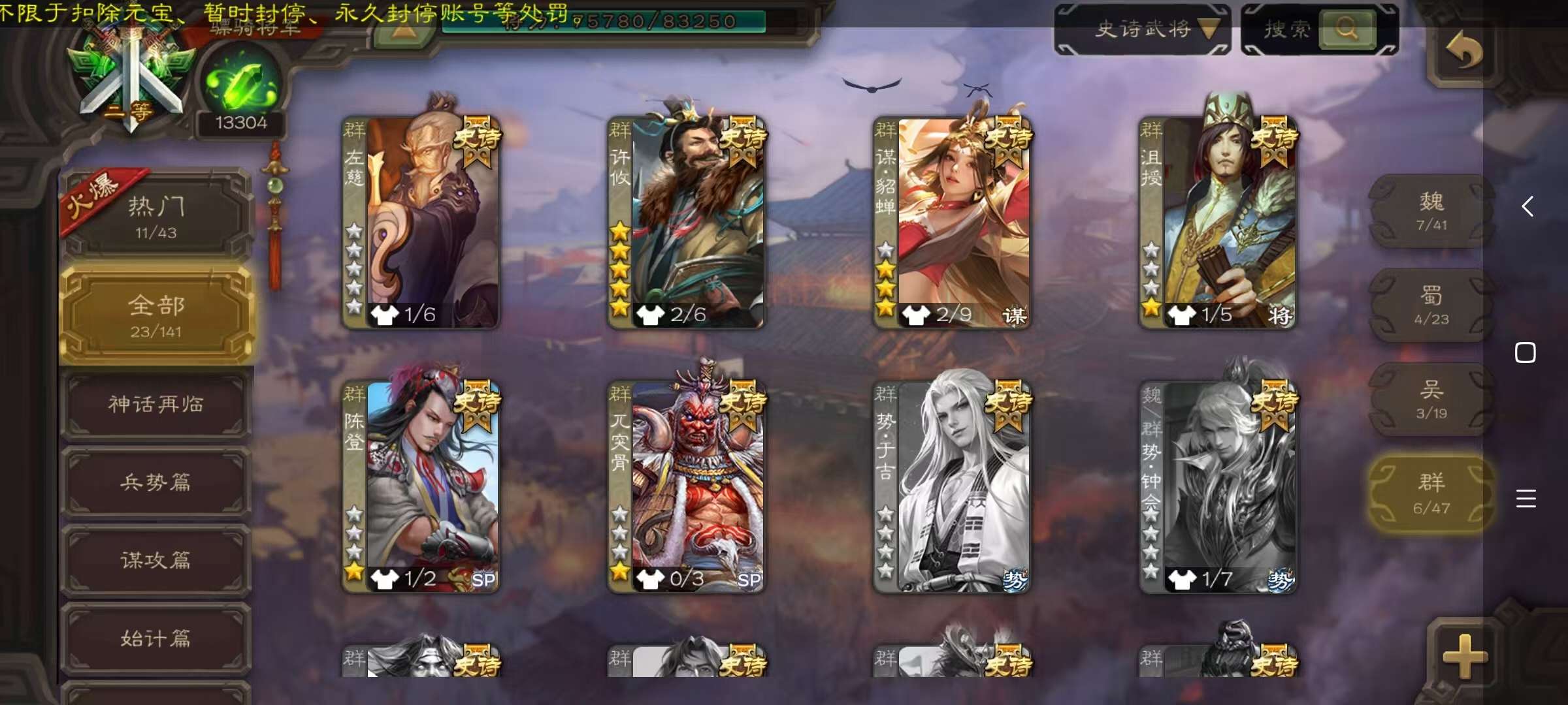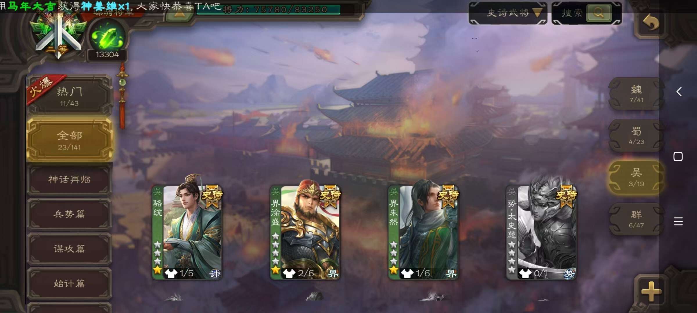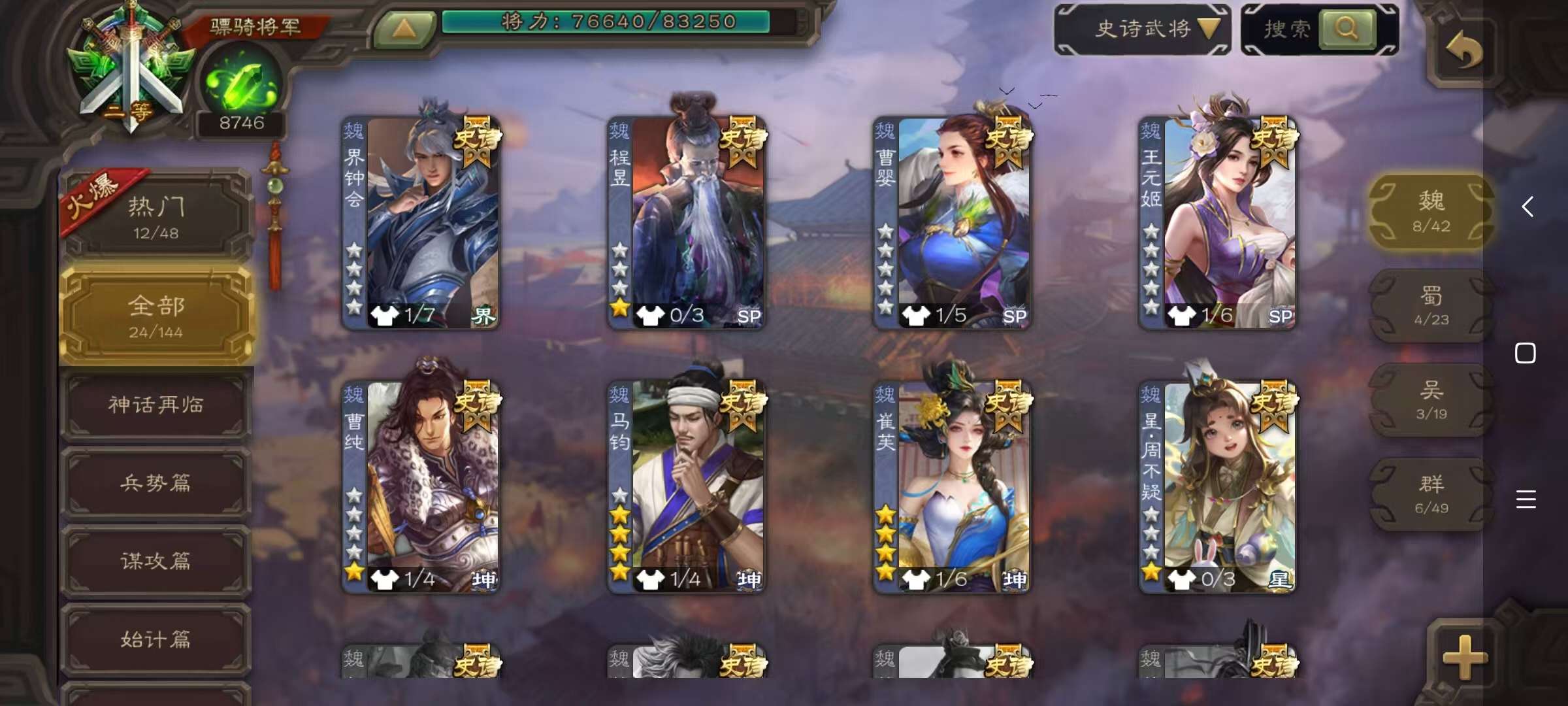 史诗武将数量: