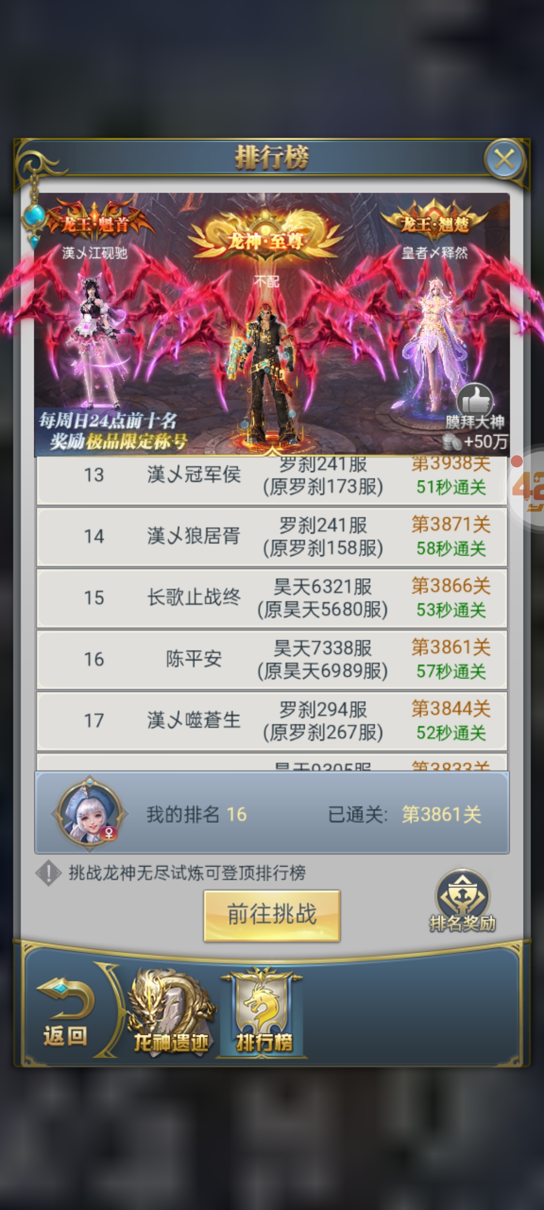 龙神榜第16百亿区一号,魂环虚战少满凶兽,4页大奖积分大奖全满循环多,中枢觉醒500+,3.5折号
