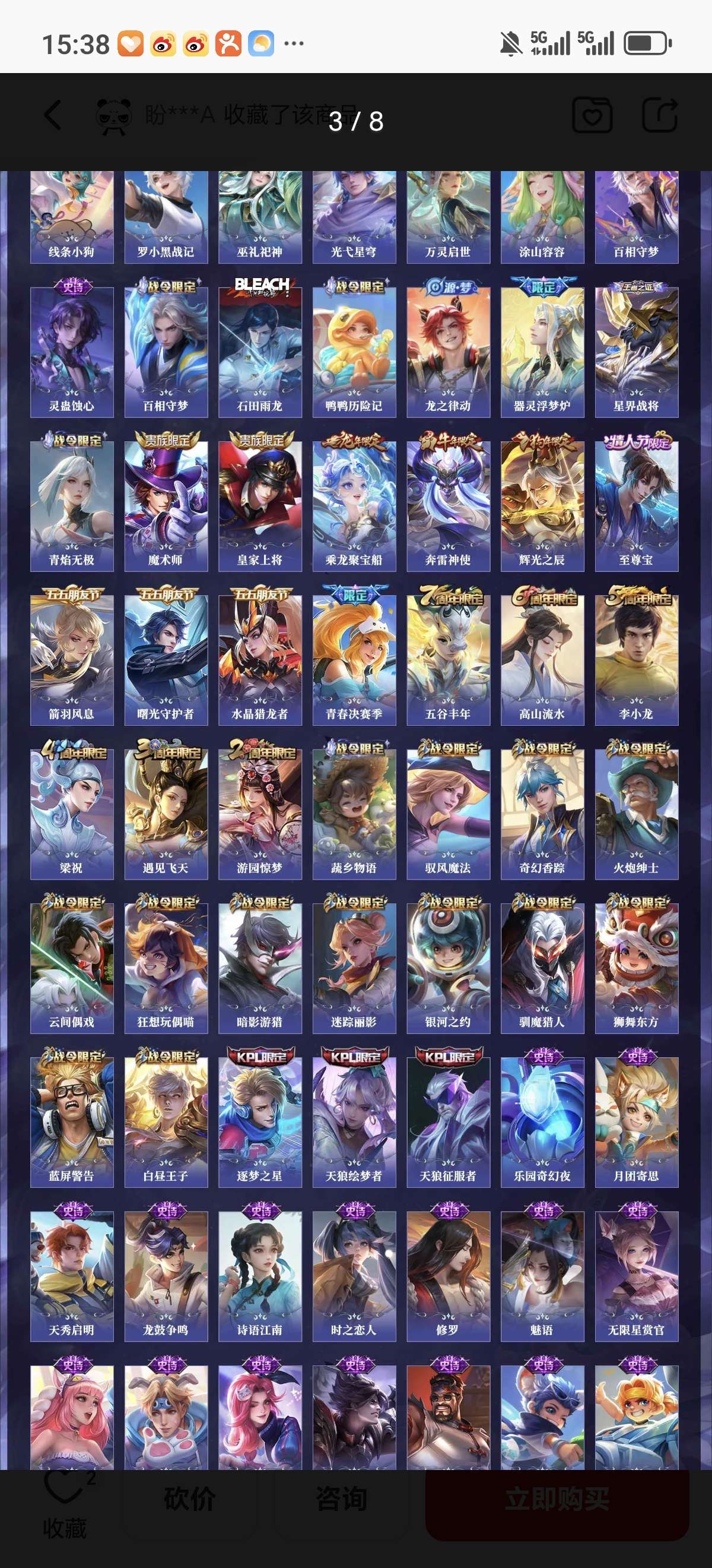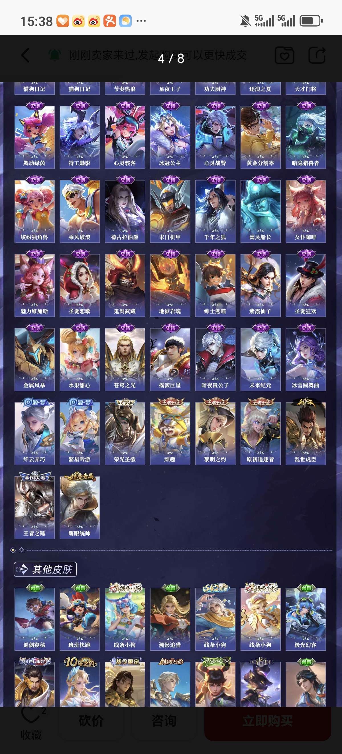 贵族8 荣耀典藏2 传说皮肤15 史诗皮肤102 皮肤数量362