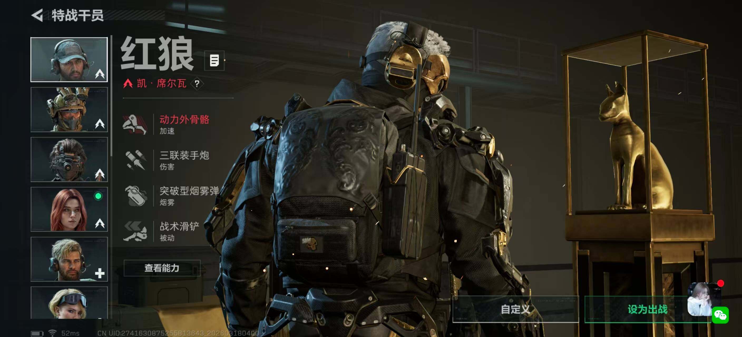 【干员外观】:红狼-蚀金玫瑰,骇爪-水墨云图,威龙-凌霄戍卫,露娜-金牌射手,乌鲁鲁-荒原猎手