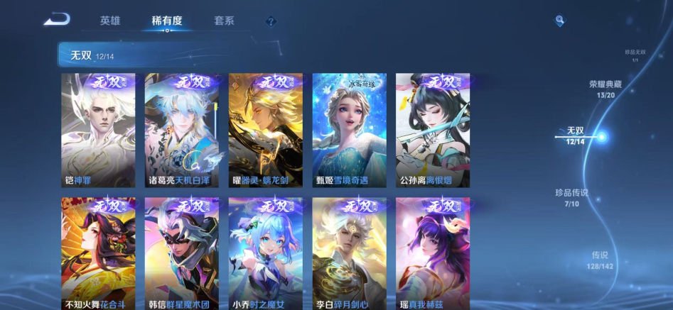 【女号V10 722皮肤14水晶1珍品无双12无双2星元7