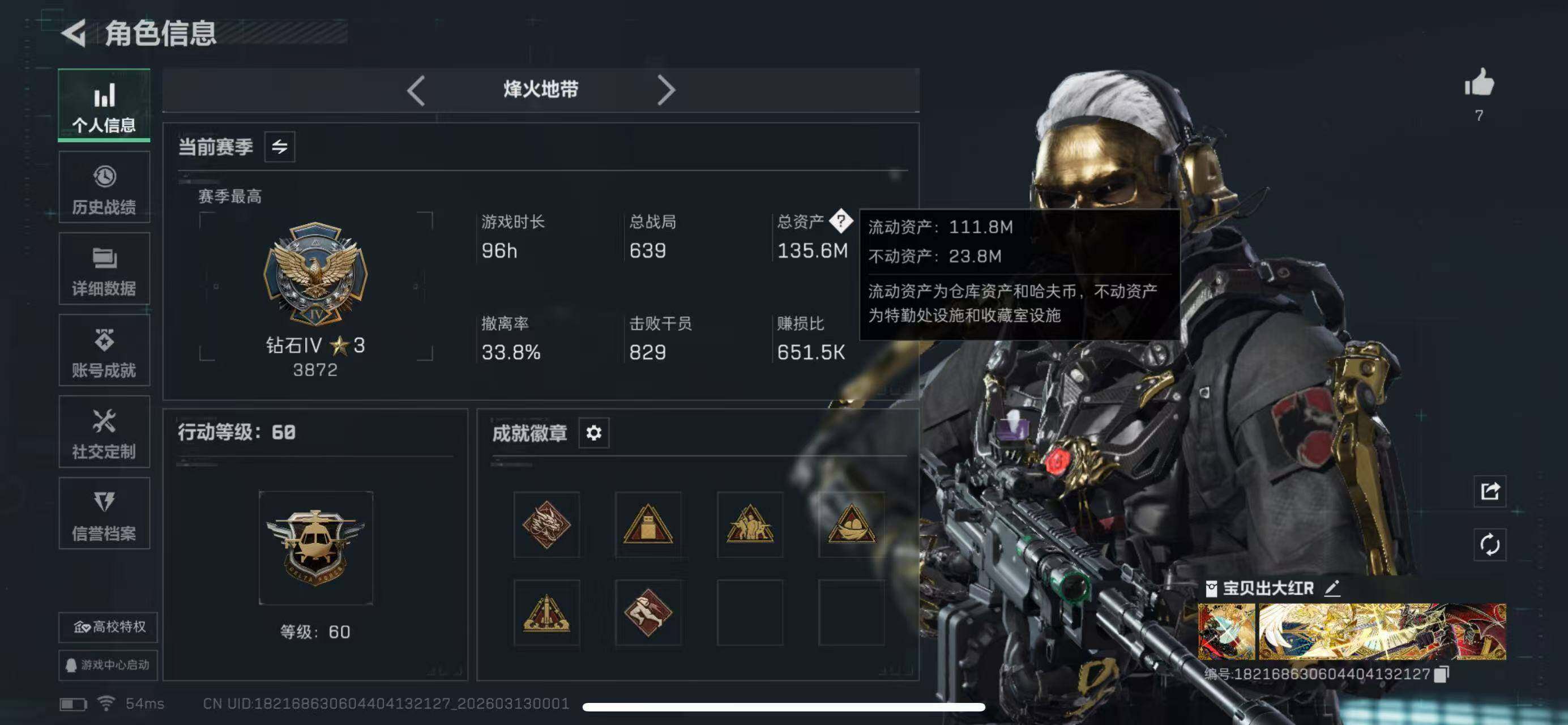 【SJ1362】【无封禁记录】行动等级:60 总资产:135M 哈夫币:392