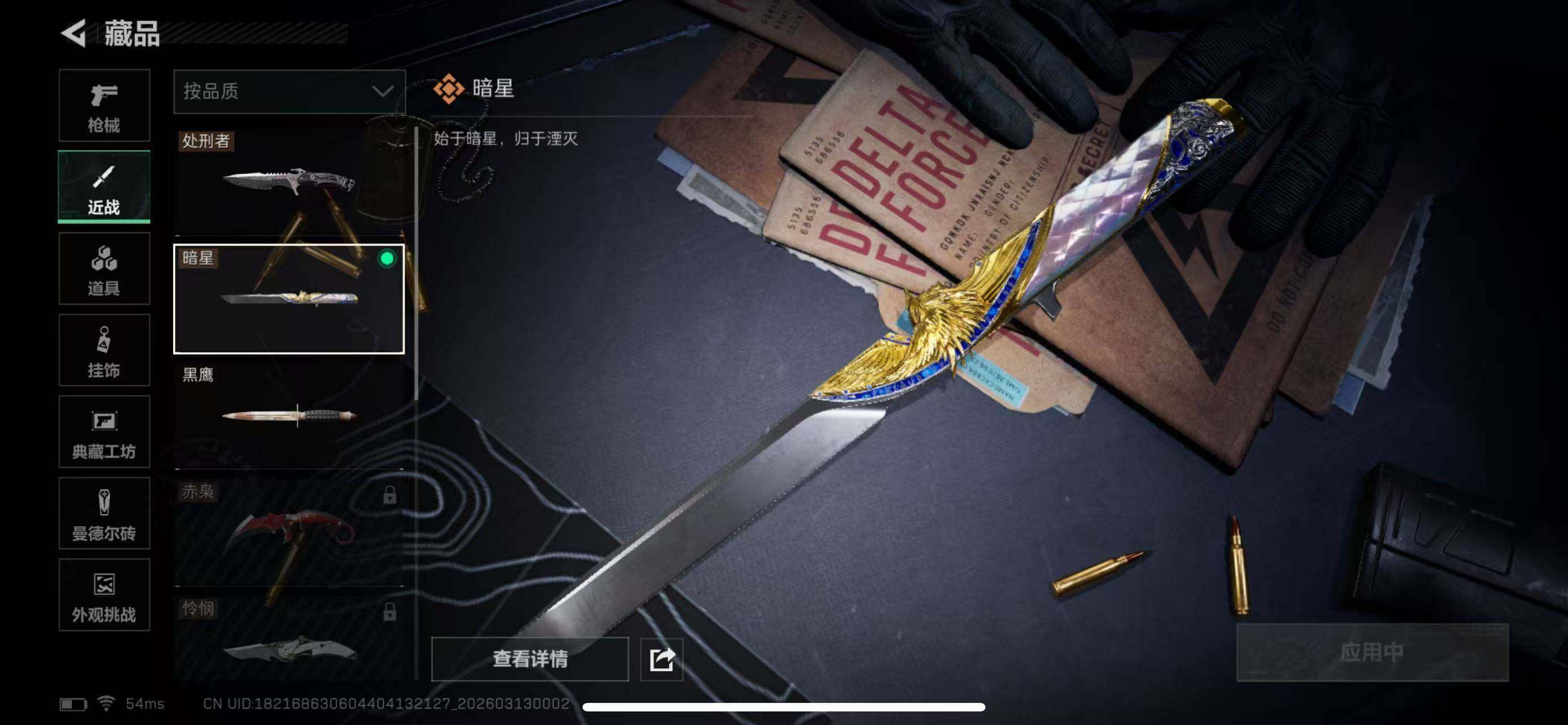 【近战皮肤】:近战-暗星,近战-处刑者1级,近战-黑鹰