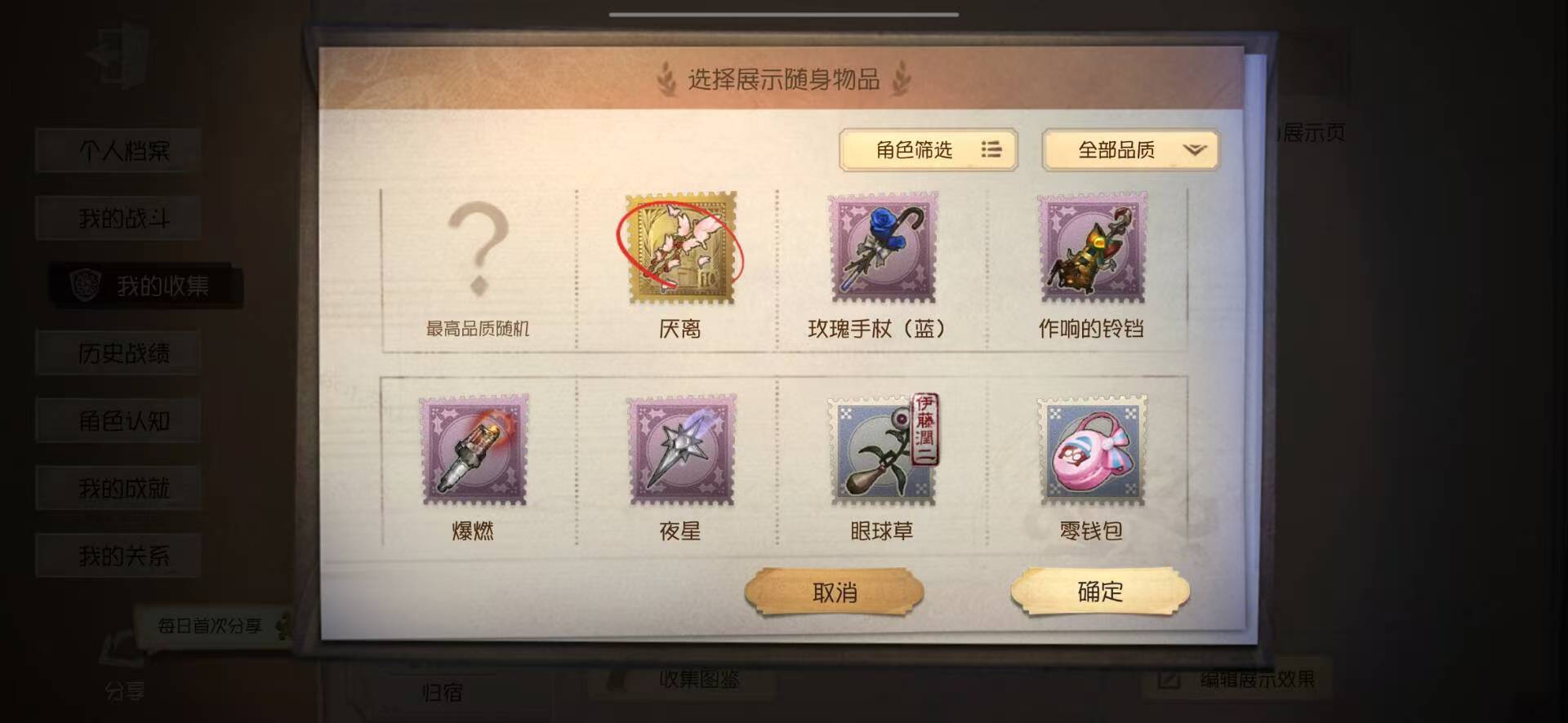 随身物品: