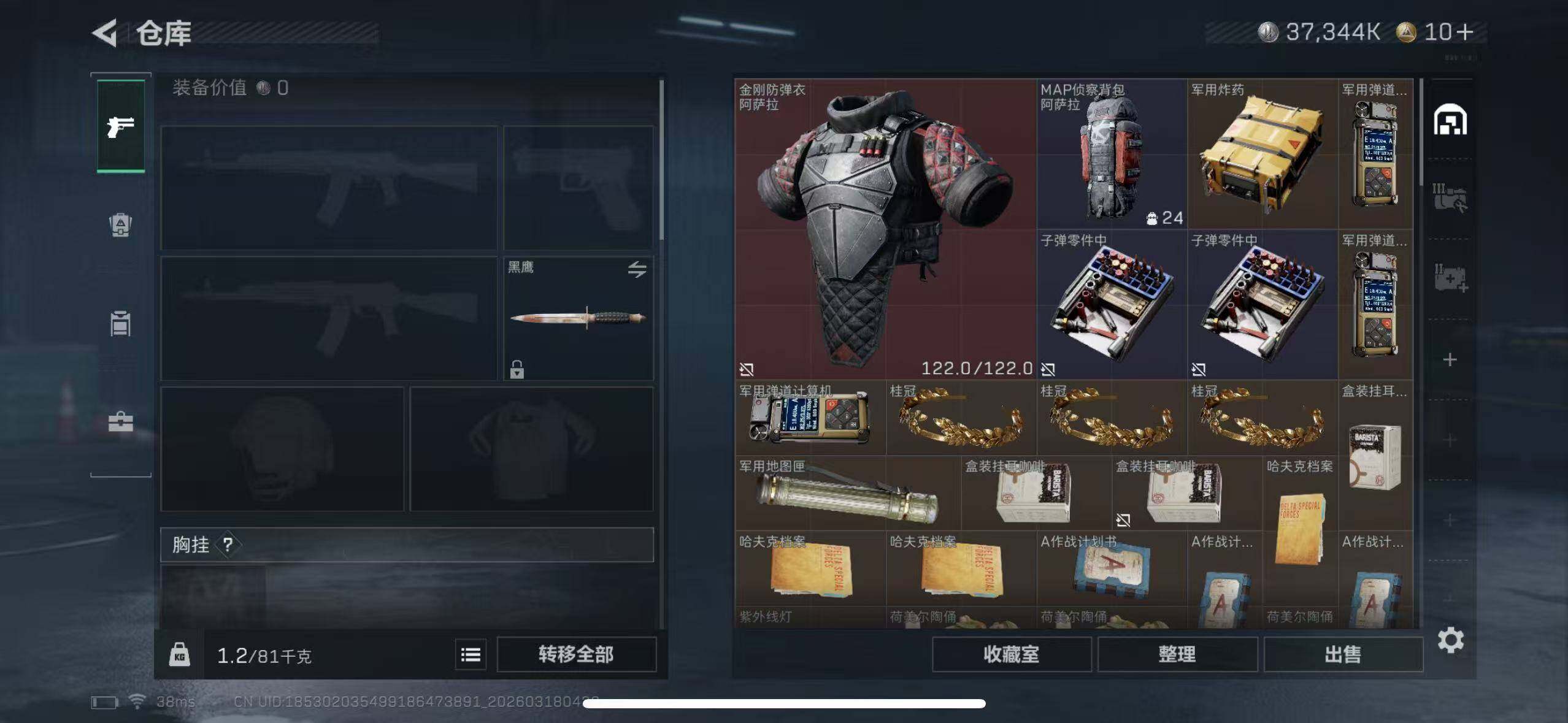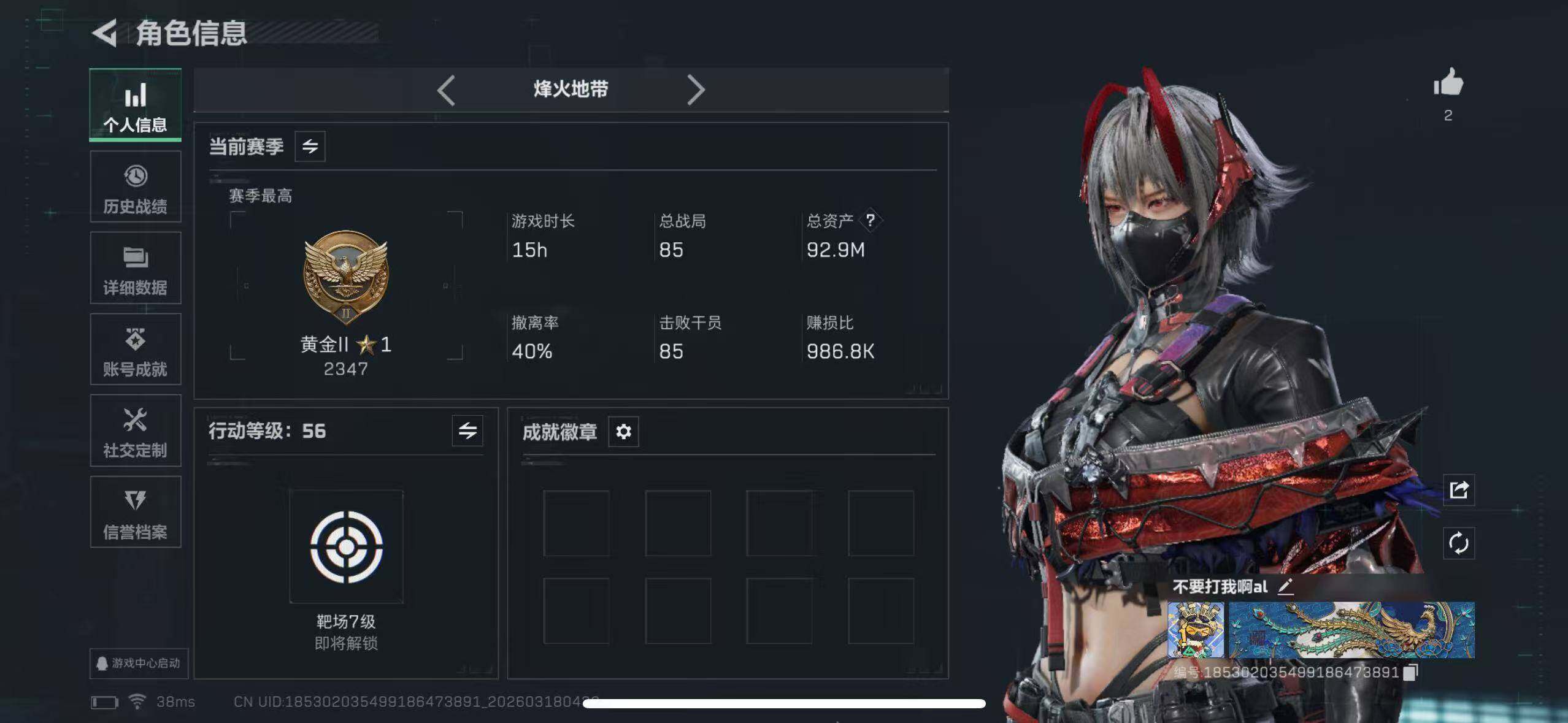 92m总资产-37344k哈夫币-56烽火等级-黄金-5战场等级-无军衔