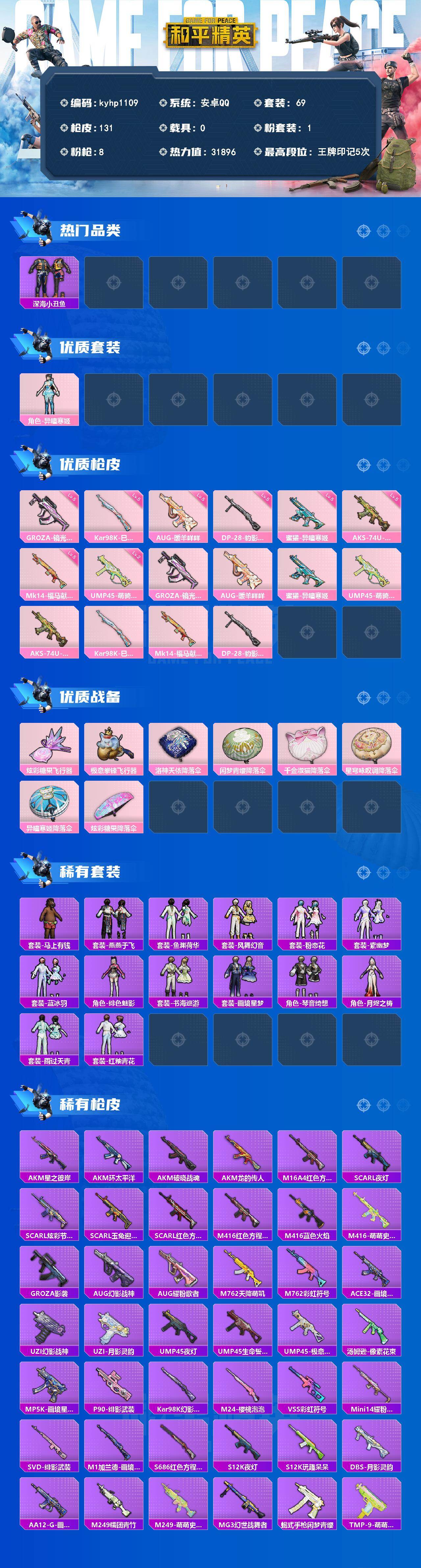 安卓 手Q-1粉装-8特效枪-0载具-2粉色飞行器-31896热力值-5王牌印记-69套装-131枪皮