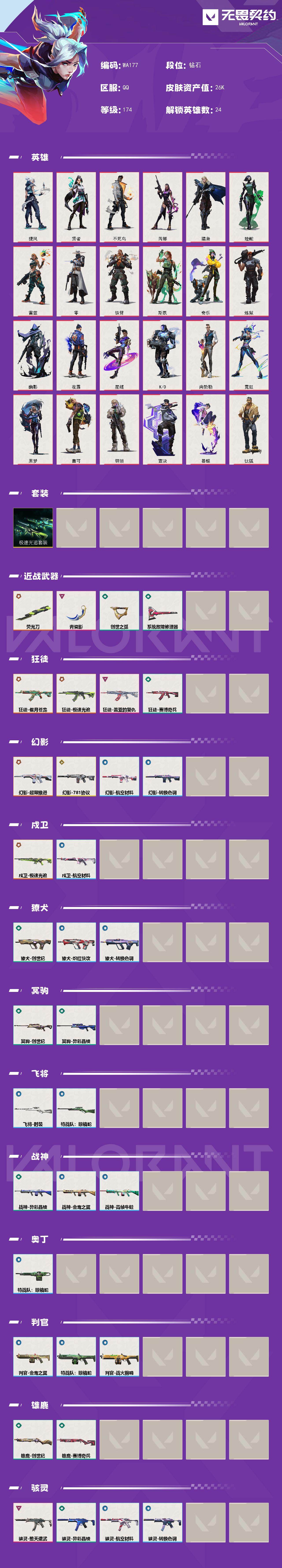 【近战武器】:近战武器-青瓷影,近战武器-荧光刀,【狂徒】:狂徒-偃月苍龙,