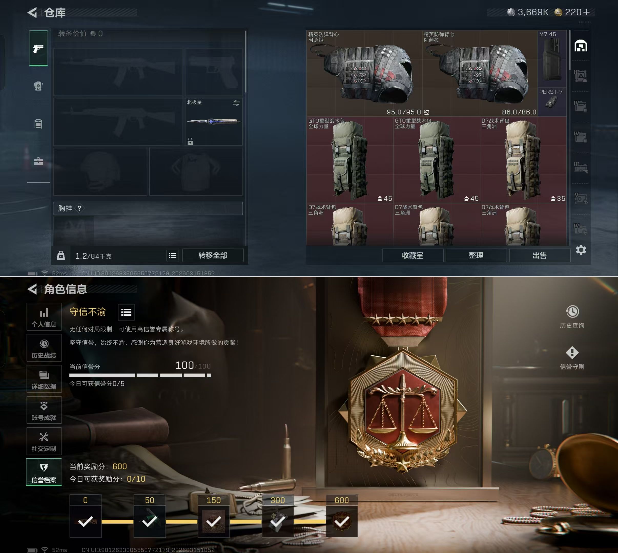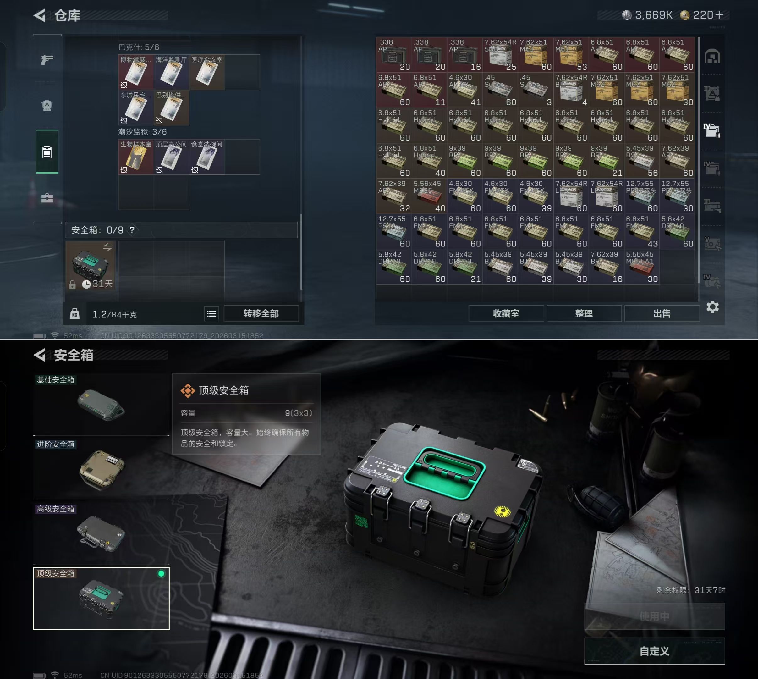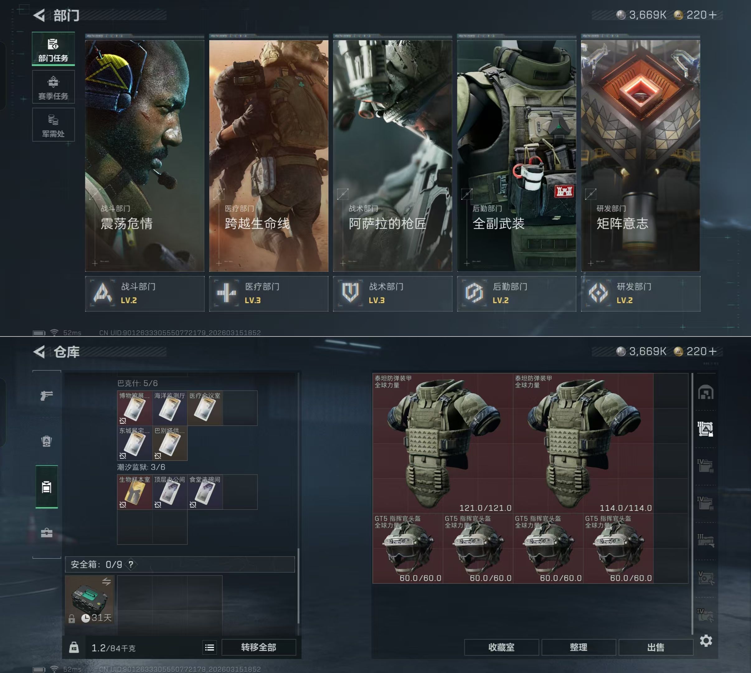 一体号251M资产 5干员 蚀金玫瑰 北极星 处刑者 S8赛季安全箱3x3