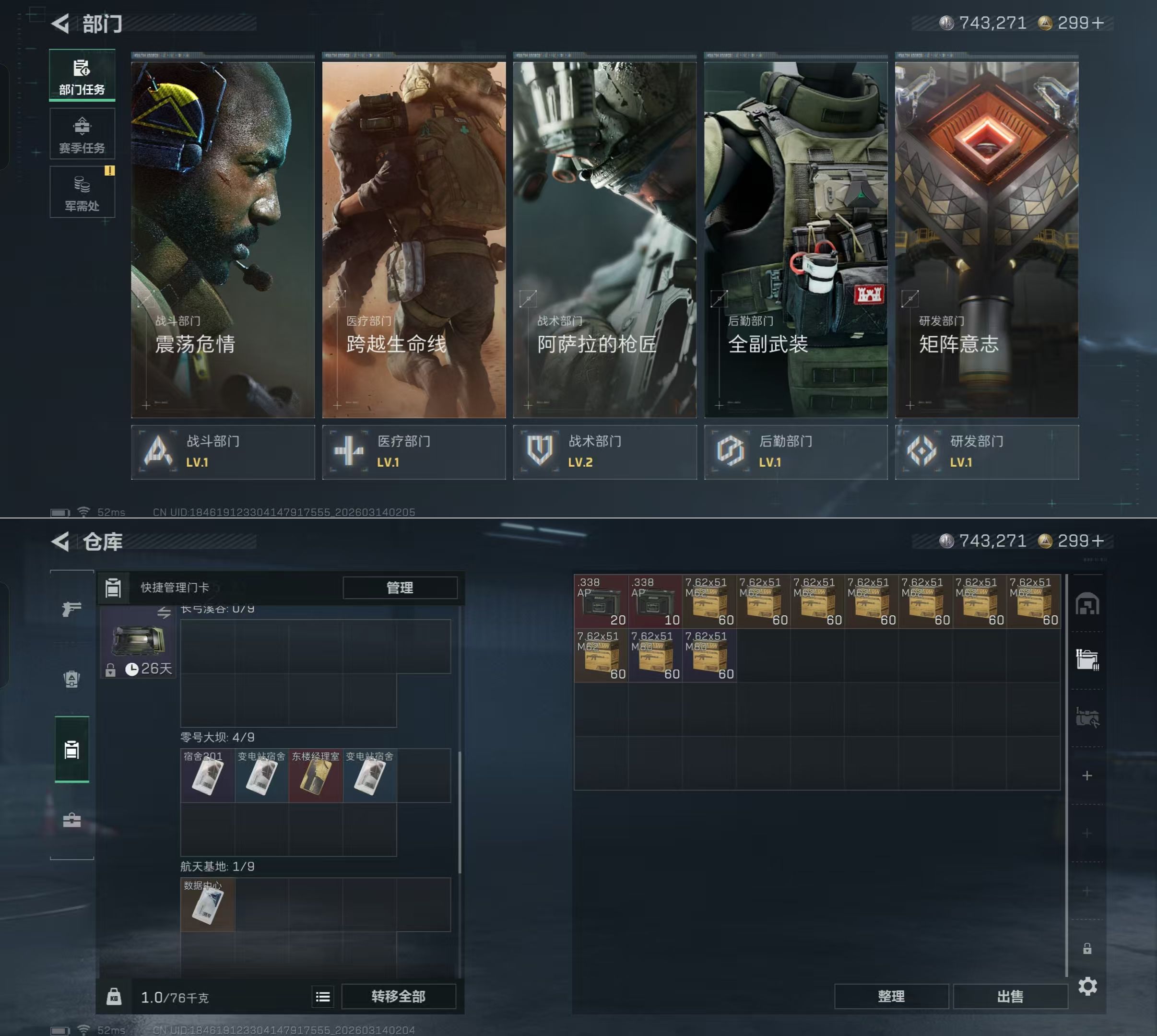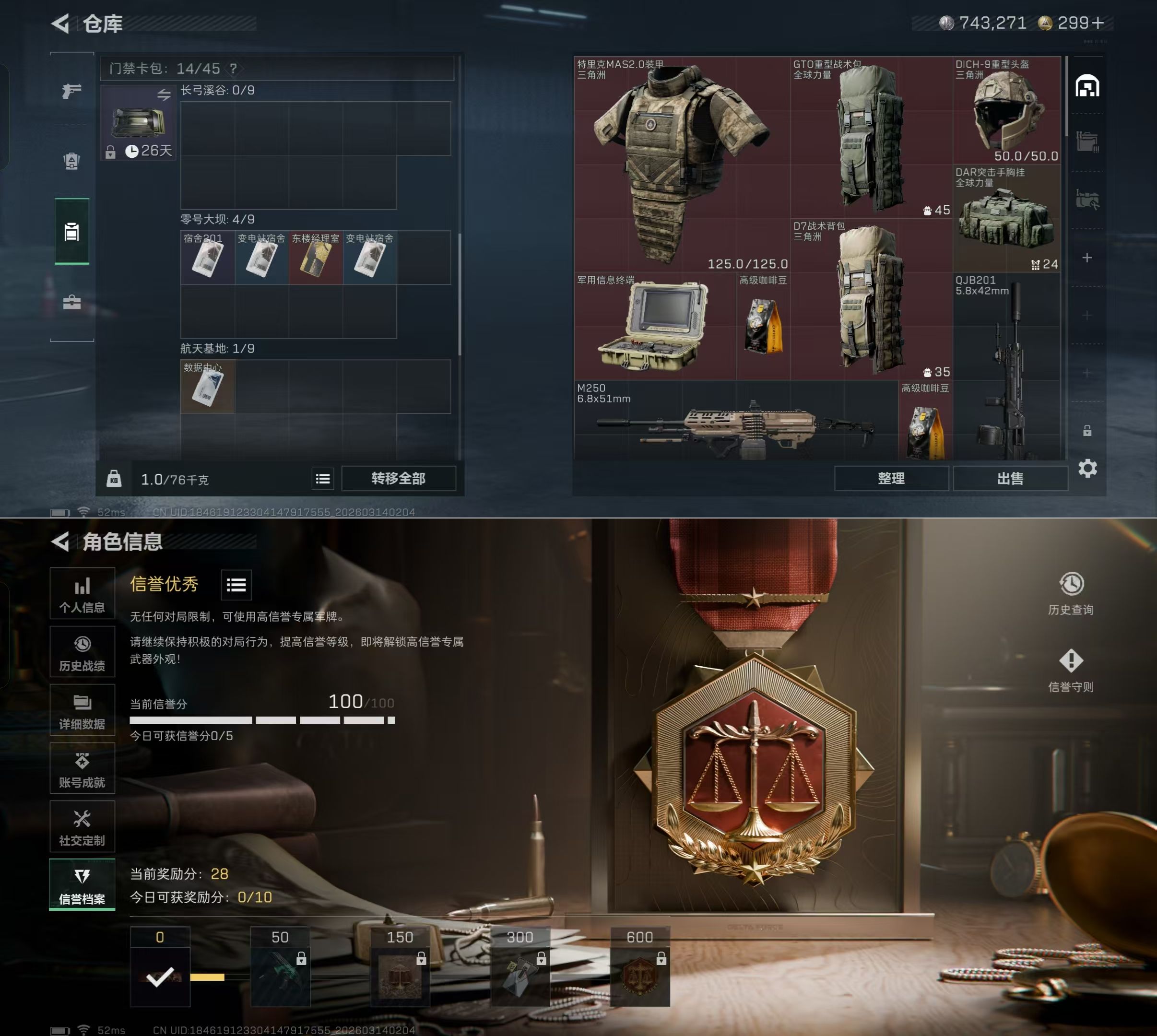 【总资产(M)】70.8【哈夫币】743.27【行动等级】41【近战武器】黑鹰