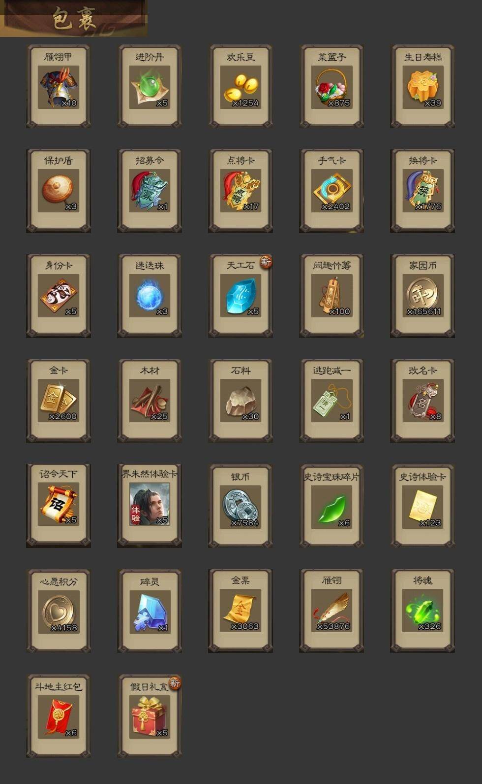 官阶:骠骑将军;VIP等级:VIP6;史诗武将数量:13;动态皮肤数量:8;武将总数:246;史诗宝珠数量:0;将魂数量:326;神将:0;魏国史诗武将:10;蜀国史诗武将:3;吴国史诗武将:1;群史诗武将:3
