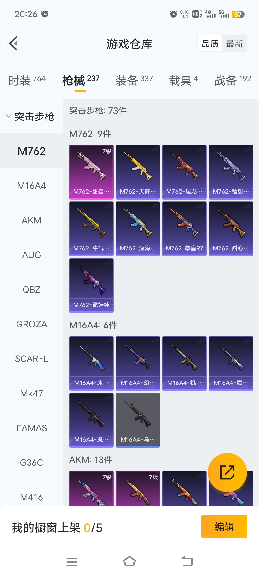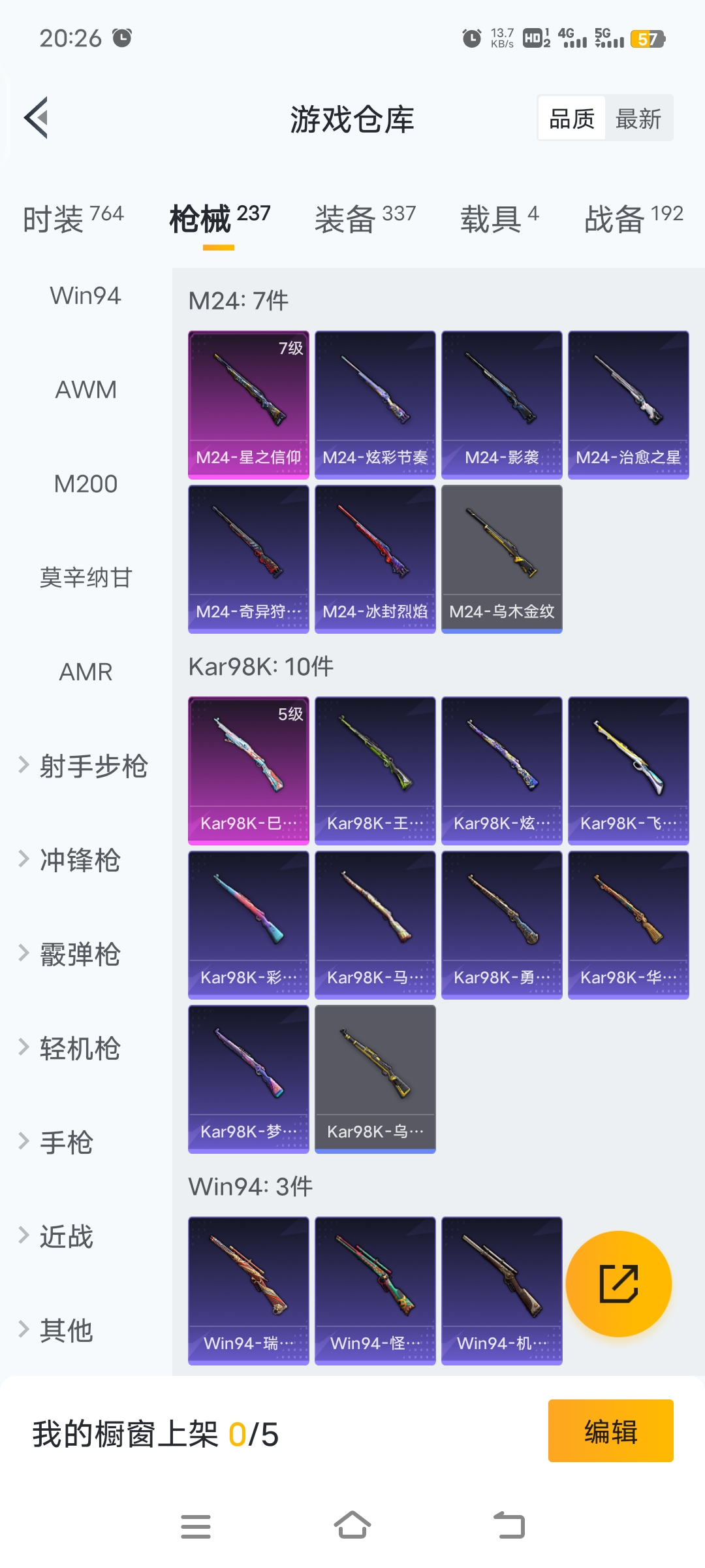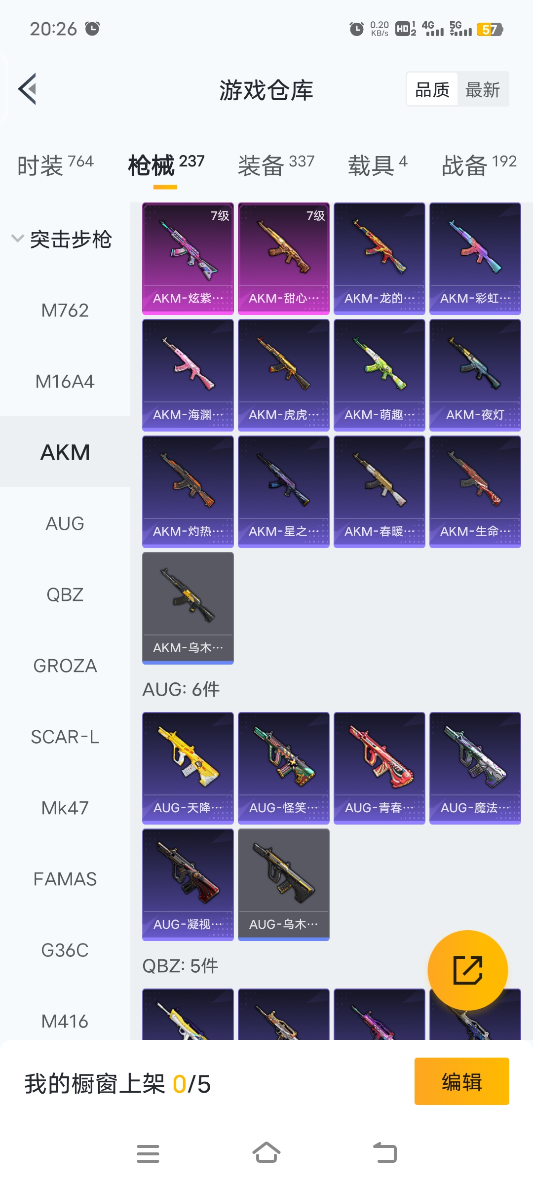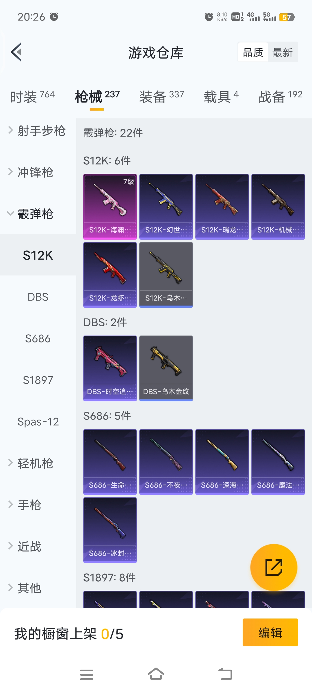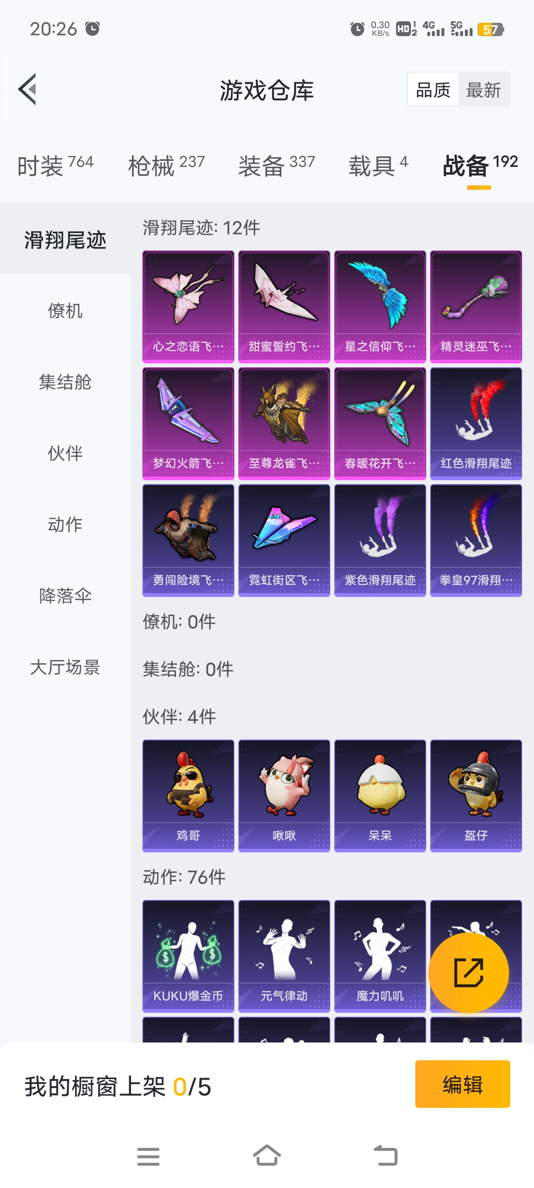 梦幻火箭等15套粉装,4载具车子,9把特效枪,26个印记