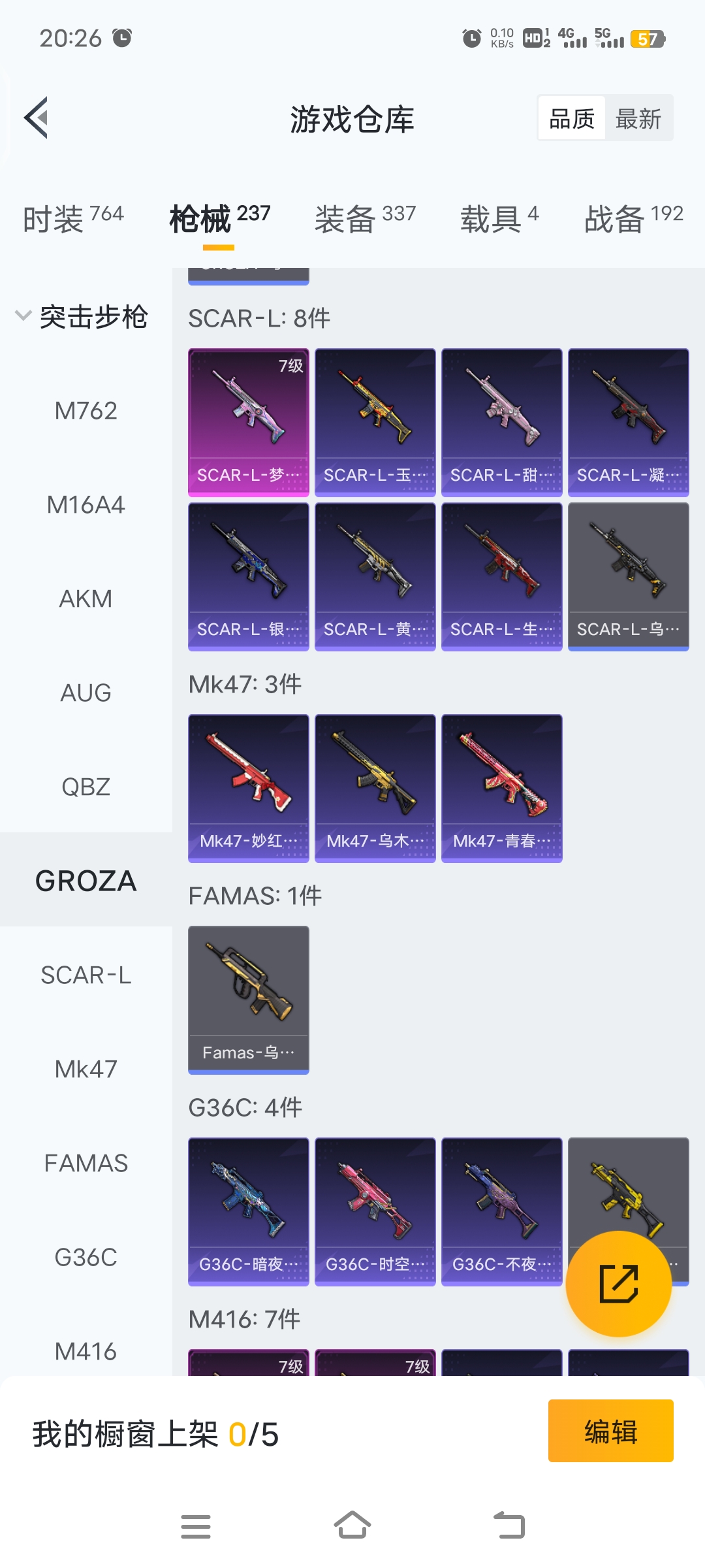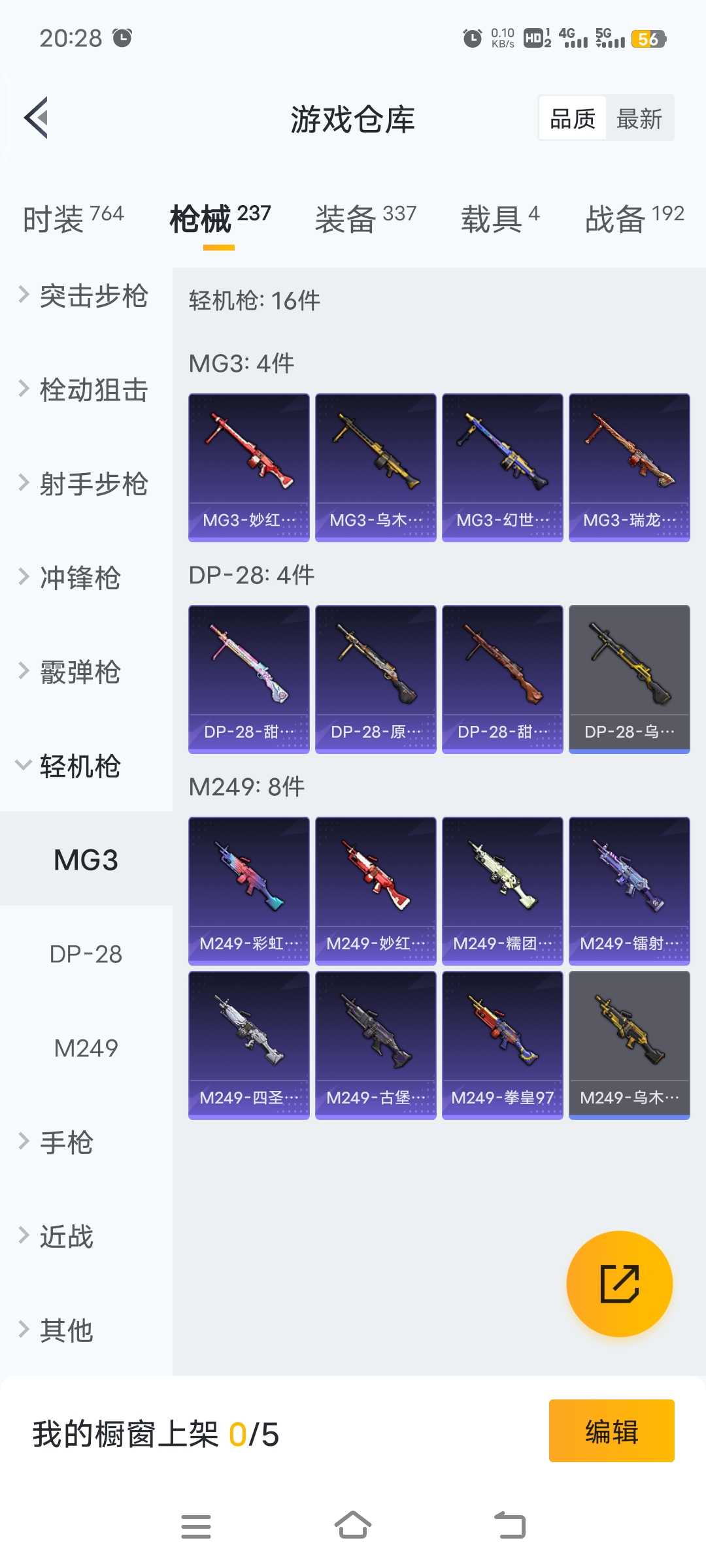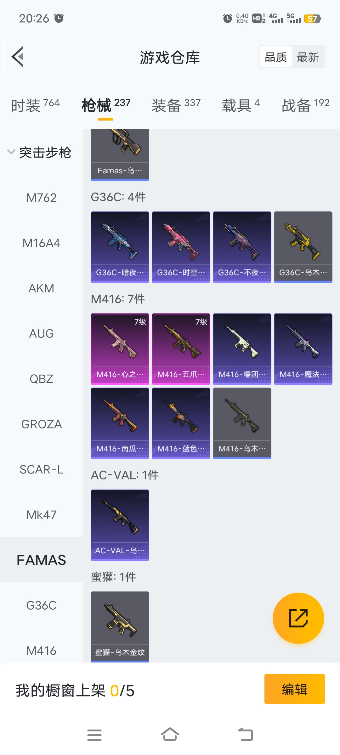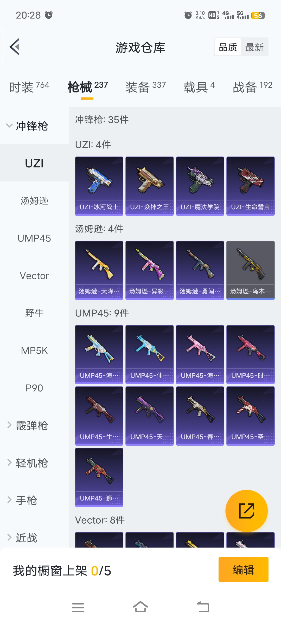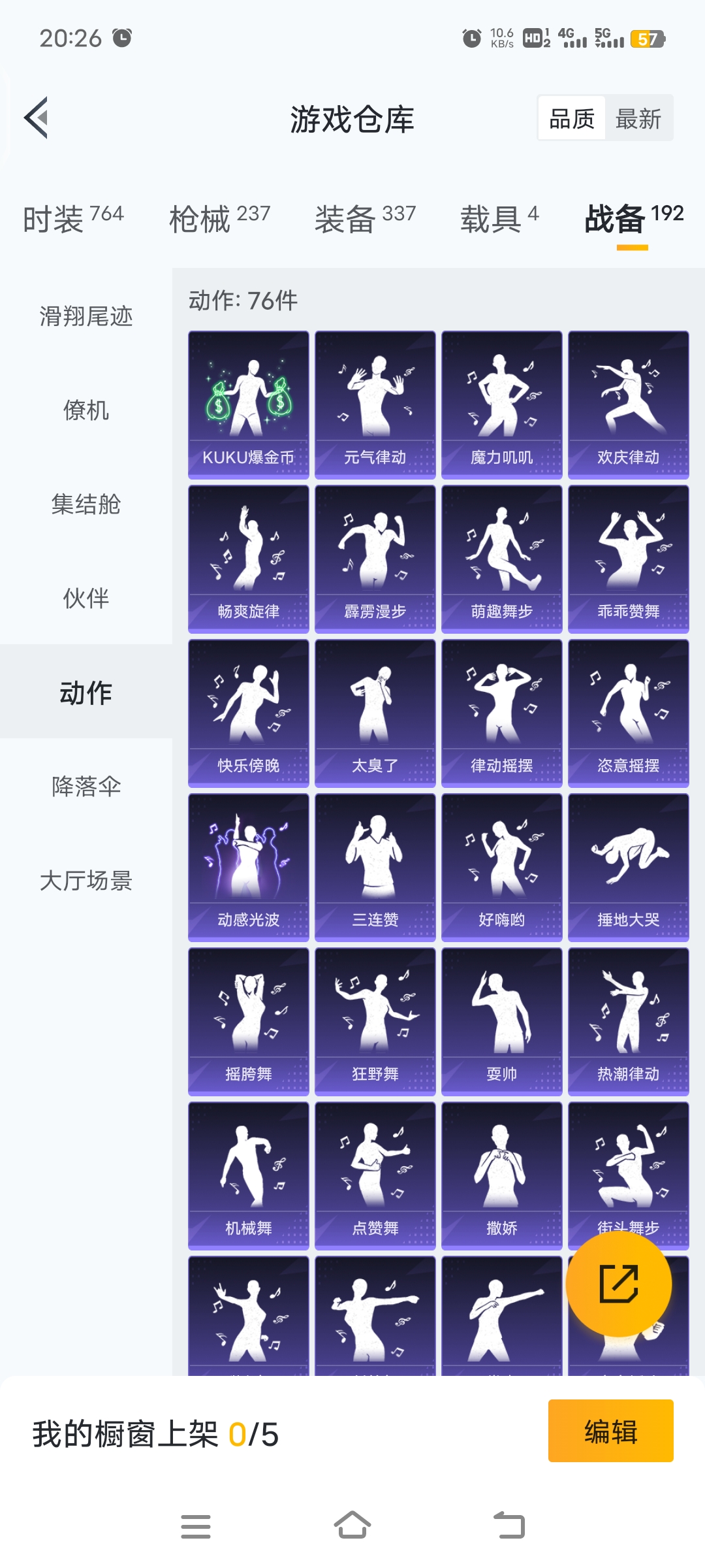 梦幻火箭等15套粉装,4载具车子,9把特效枪,26个印记