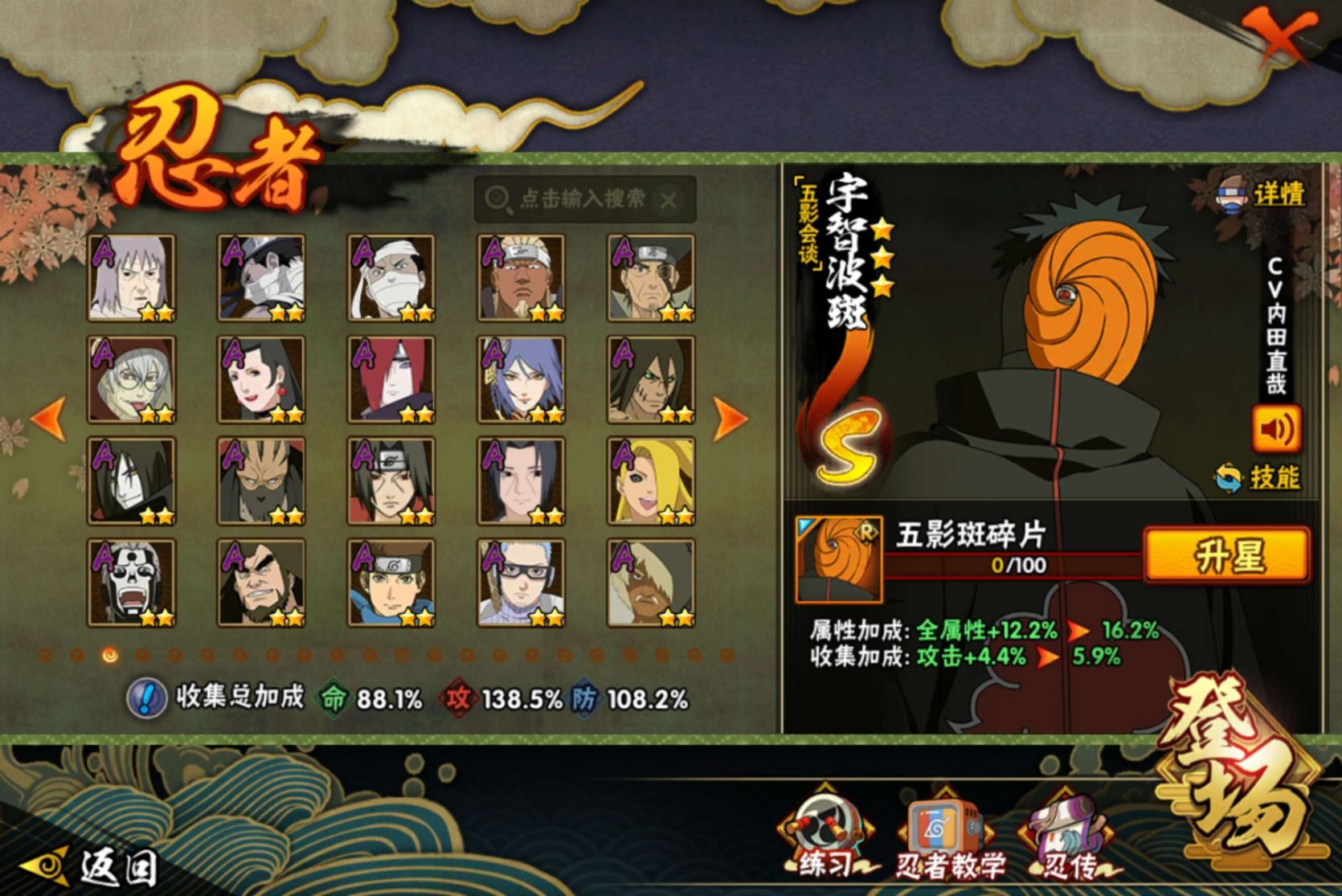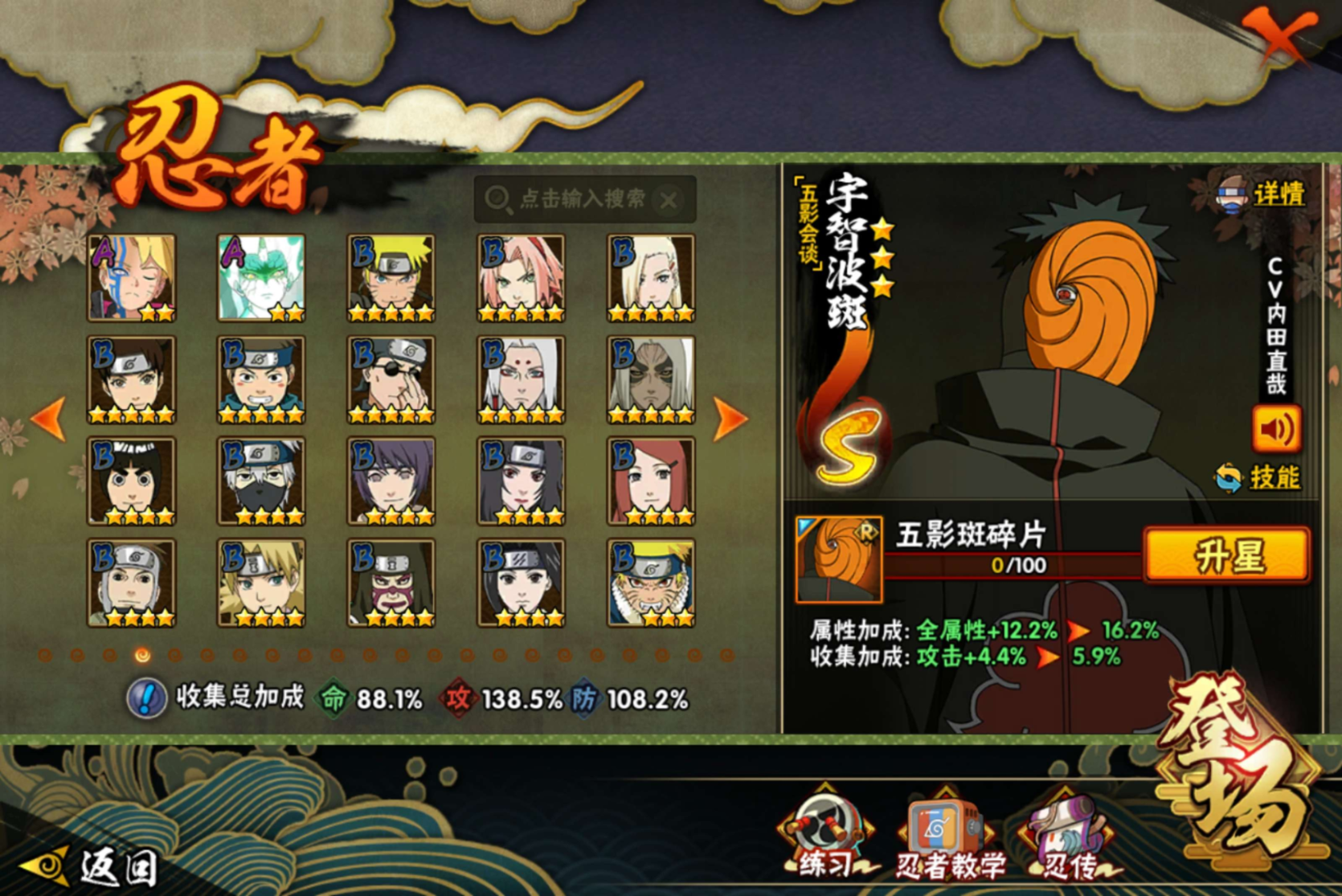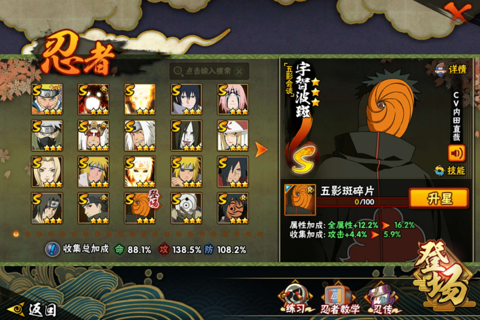 【S级忍者】大野木「忍界大战」(3星),旗木卡卡西「须佐能乎」(3星),自来