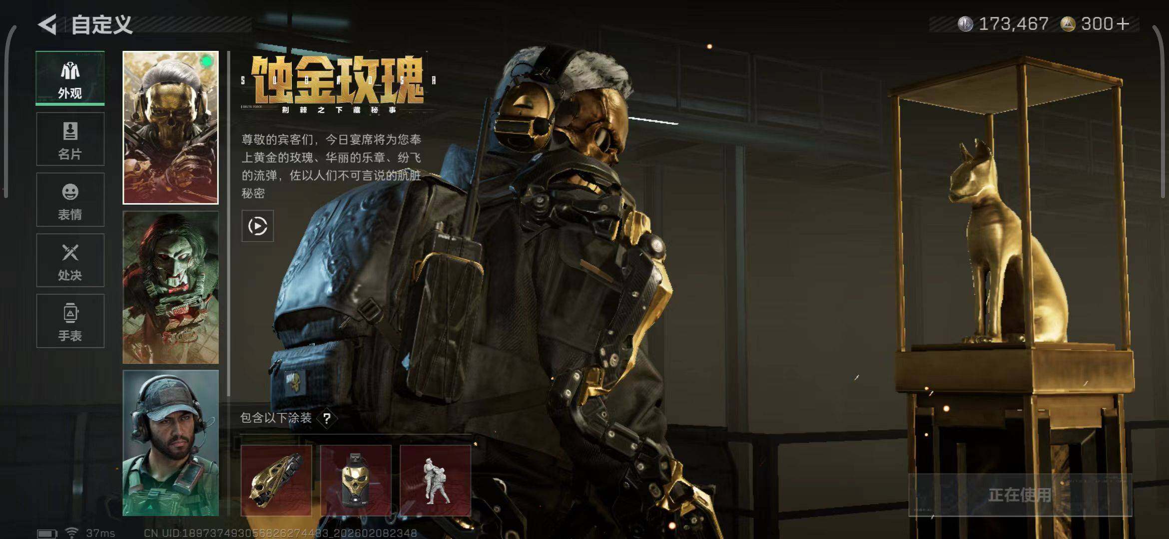【干员外观】:红狼-蚀金玫瑰,骇爪-水墨云图,露娜-黑·天际线,骇爪-维什戴尔,威龙-铁面判官,威龙-壮志凌云,蜂医-送葬人·无题密令,牧羊人-街头之王,无名-夜鹰,深蓝-不破誓约,红狼-电锯惊魂,露娜-金牌射手