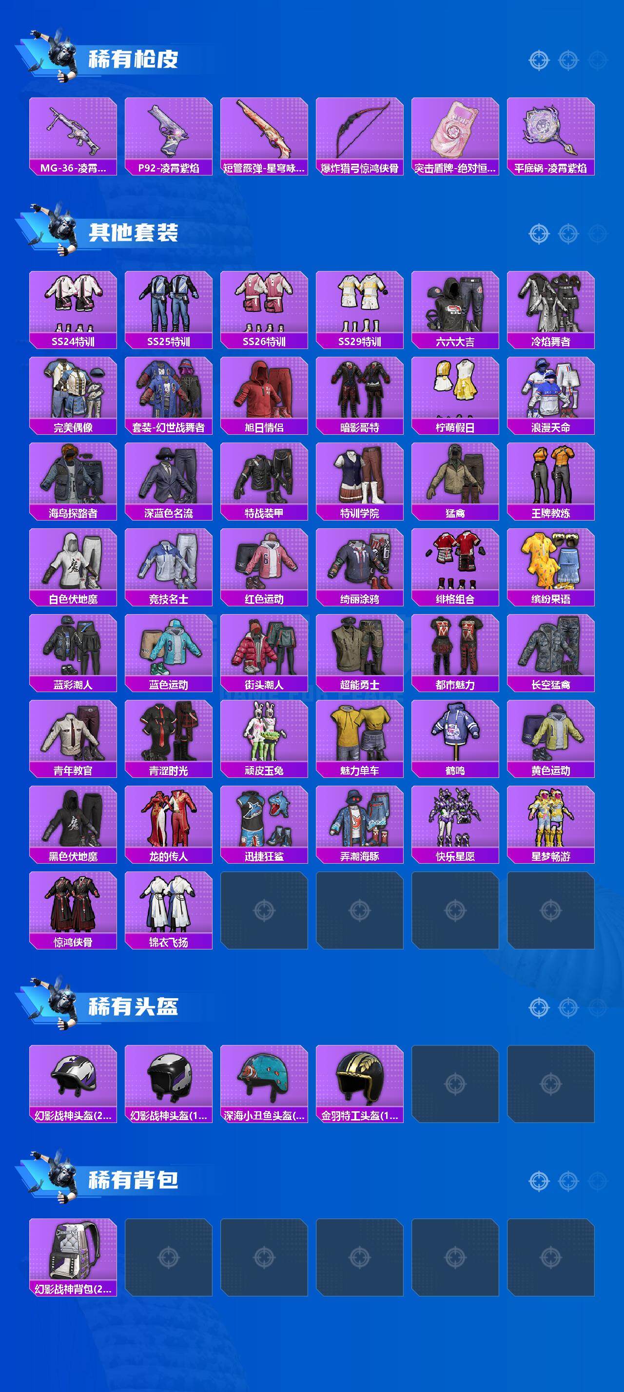 【粉色枪皮等级】:AUG-星之彼岸(二级),M762-青锋波束(五级),UMP45-萌骑冒险(五级),AKS-74U-森灵之息(五级),Mk14-甜梦熊击(五级),