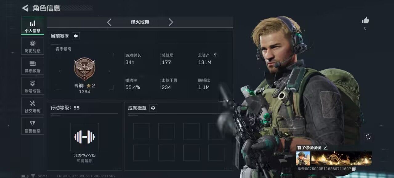 【特价出售/店主推荐】130m总资产-51148k哈伏币-55烽火等级-青铜-1战场等级-无军衔【近战皮肤】:近战-黑鹰【史诗外观】:M250通用机枪-囚徒,M14射手步枪-工业狂潮【稀有外观】:M700狙击步枪-旧梦,Vector冲锋枪-先锋,SMG-45-行动开启,勇士冲锋枪-冰天雪地,Mini-14射手步枪-荣耀列队【普通外观】:SMG-45冲锋枪-蝴蝶,S12K霰弹枪-古铜,M7战斗步枪-噬菌体,QBZ95-1突击步枪-三角洲力量,QBZ95-1突击步枪-海色,M16A4突击步枪-高雅黑
