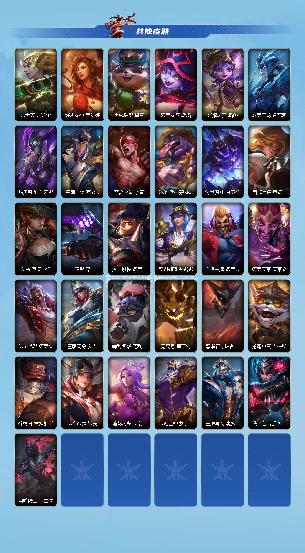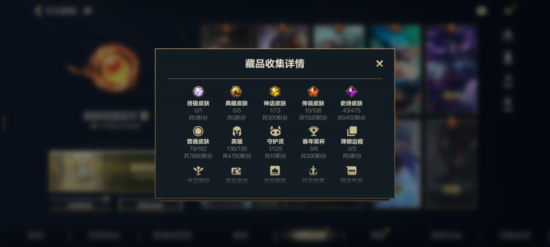 123英雄/99皮肤/1神话/10传说/43史诗/