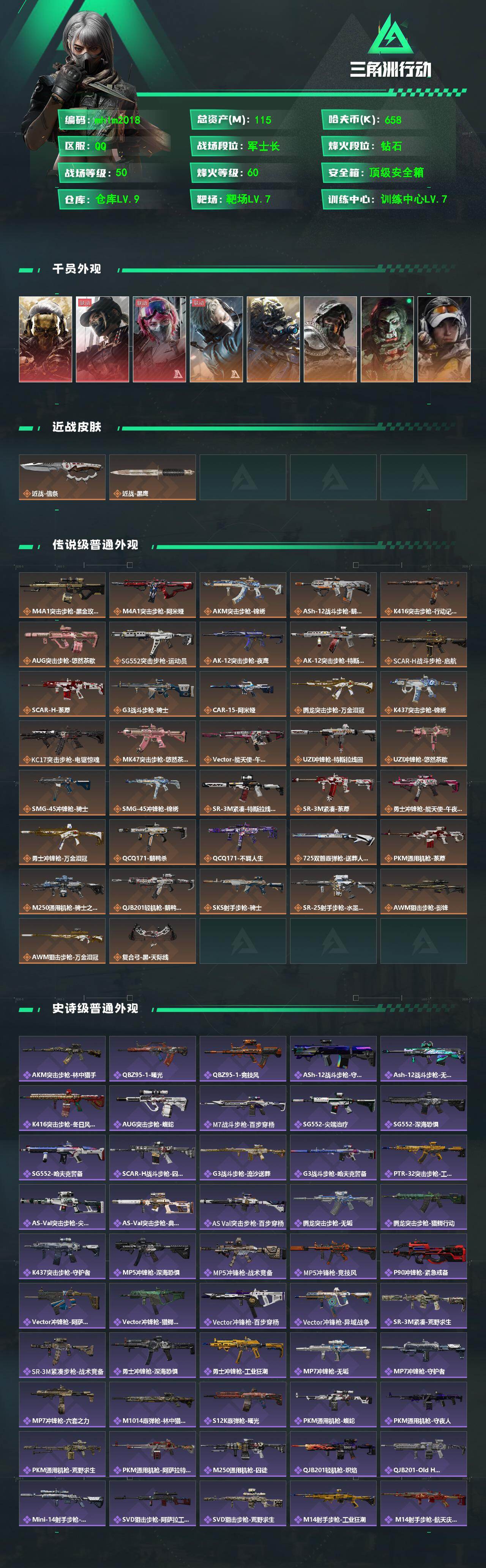 115m总资产-658k哈夫币-60烽火等级-钻石-50战场等级-军士长【干