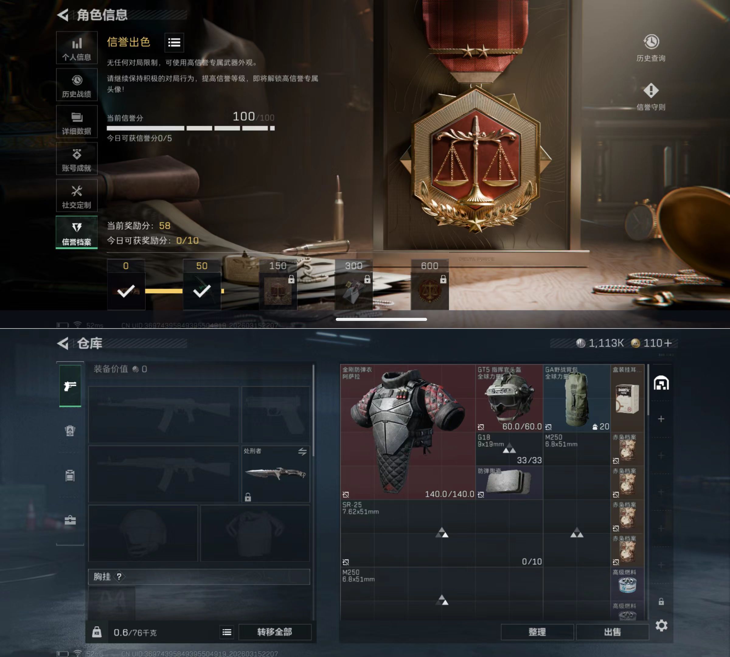 DSJZ1804【威龙-凌霄戍卫 处刑者】【总资产(M)】25.22【哈夫币】1,113.56【行动等级】36