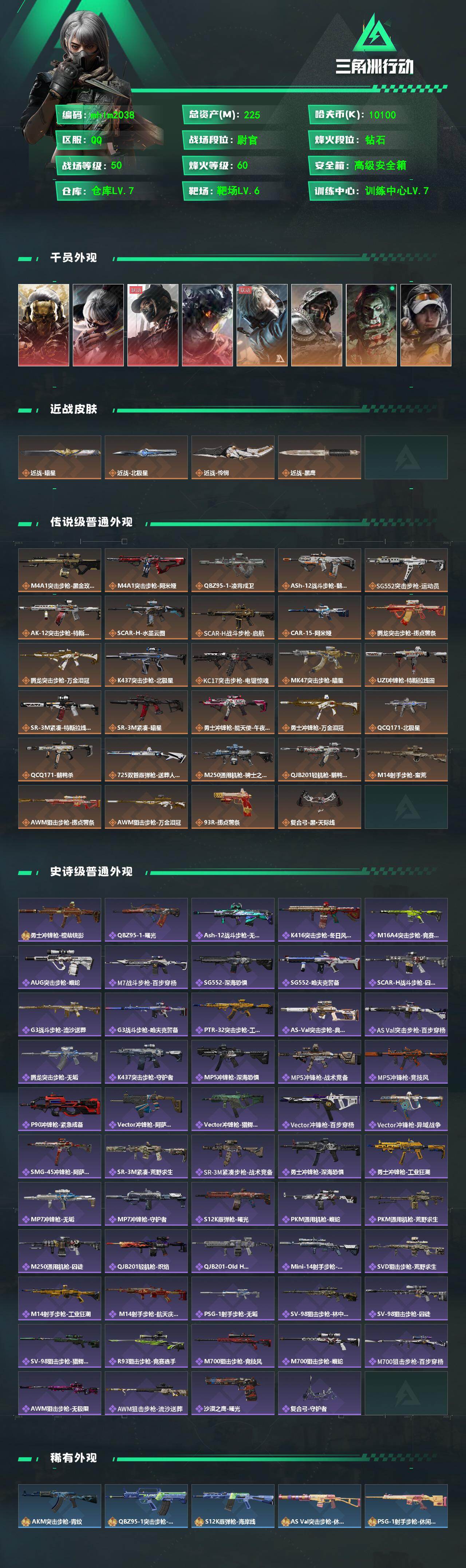 225m总资产-10100k哈夫币-60烽火等级-钻石-50战场等级-尉官