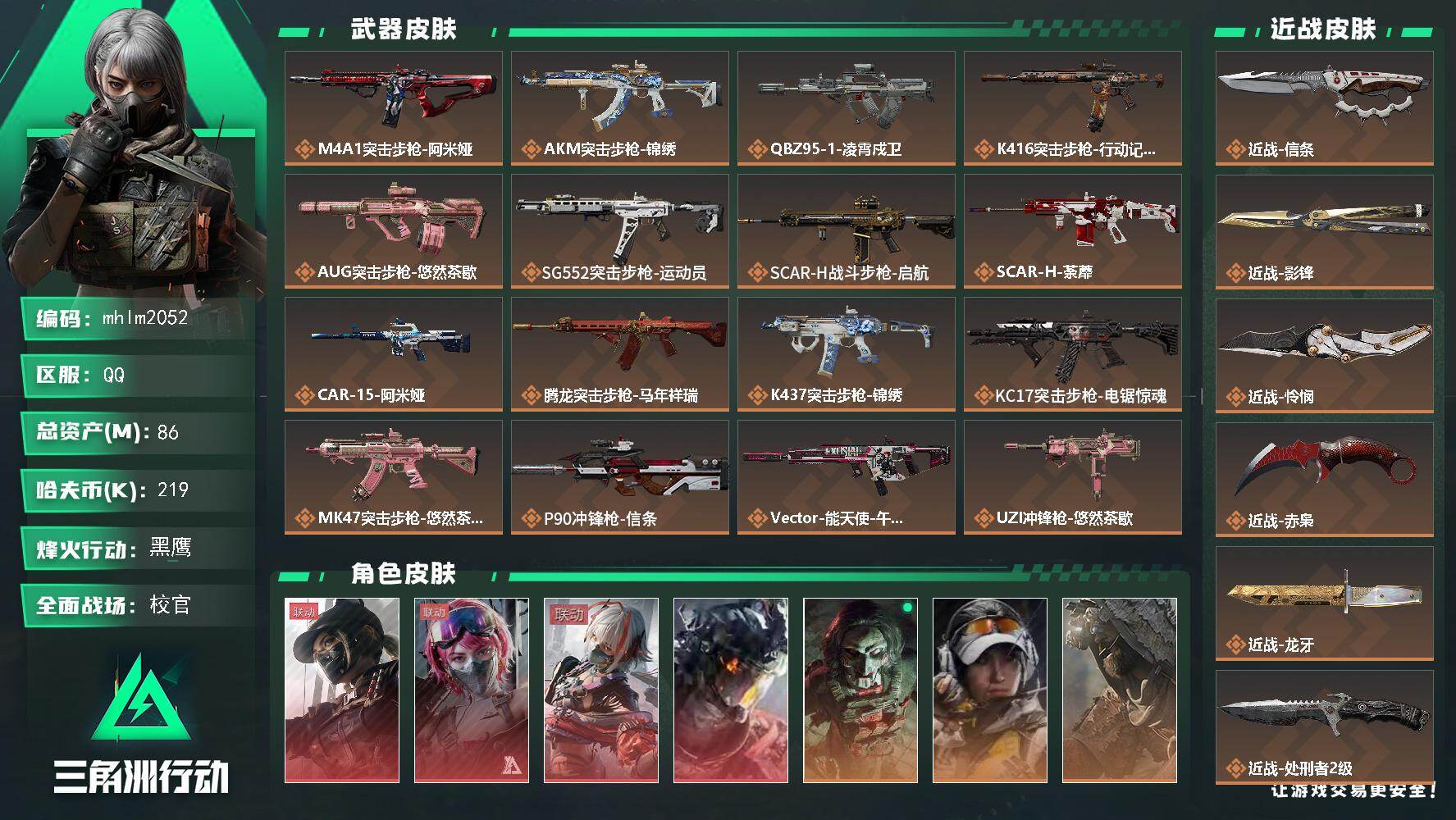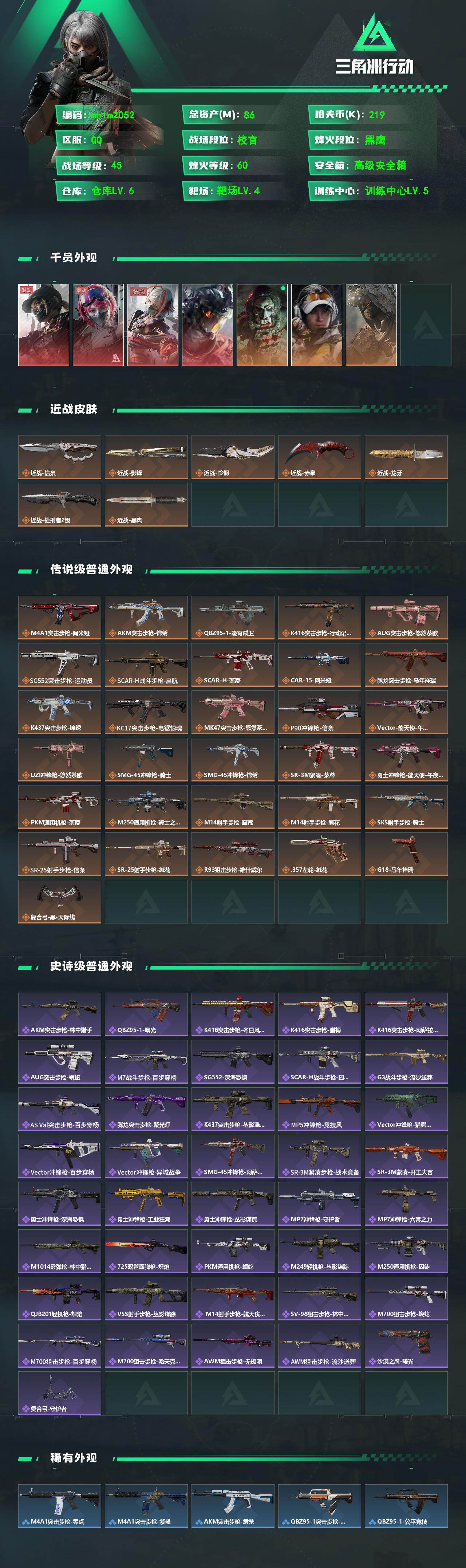 86m总资产-219k哈夫币-60烽火等级-黑鹰-45战场等级-校官
