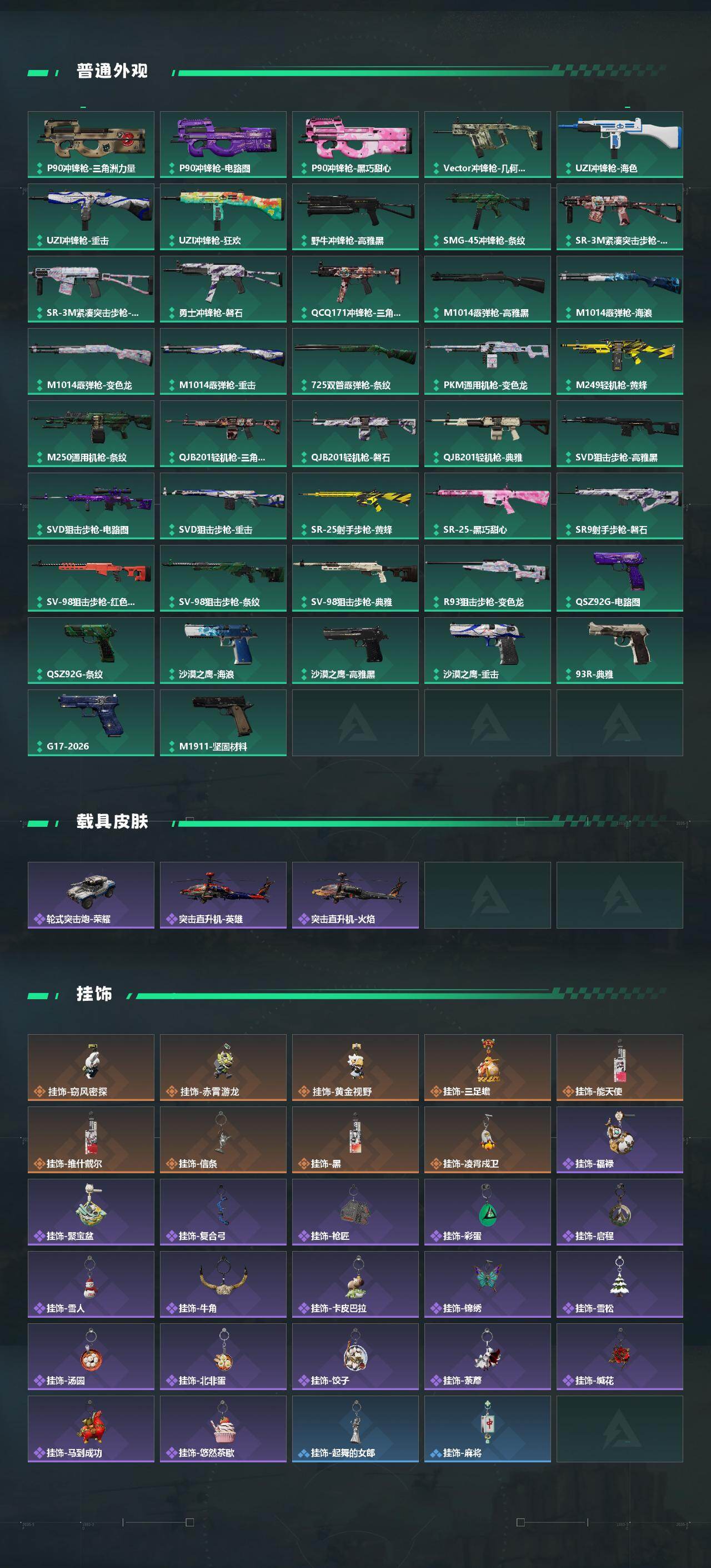 【近战皮肤】:近战-信条,近战-影锋,近战-怜悯,近战-赤枭,近战-龙牙,近战-处刑者2级,近战-黑鹰