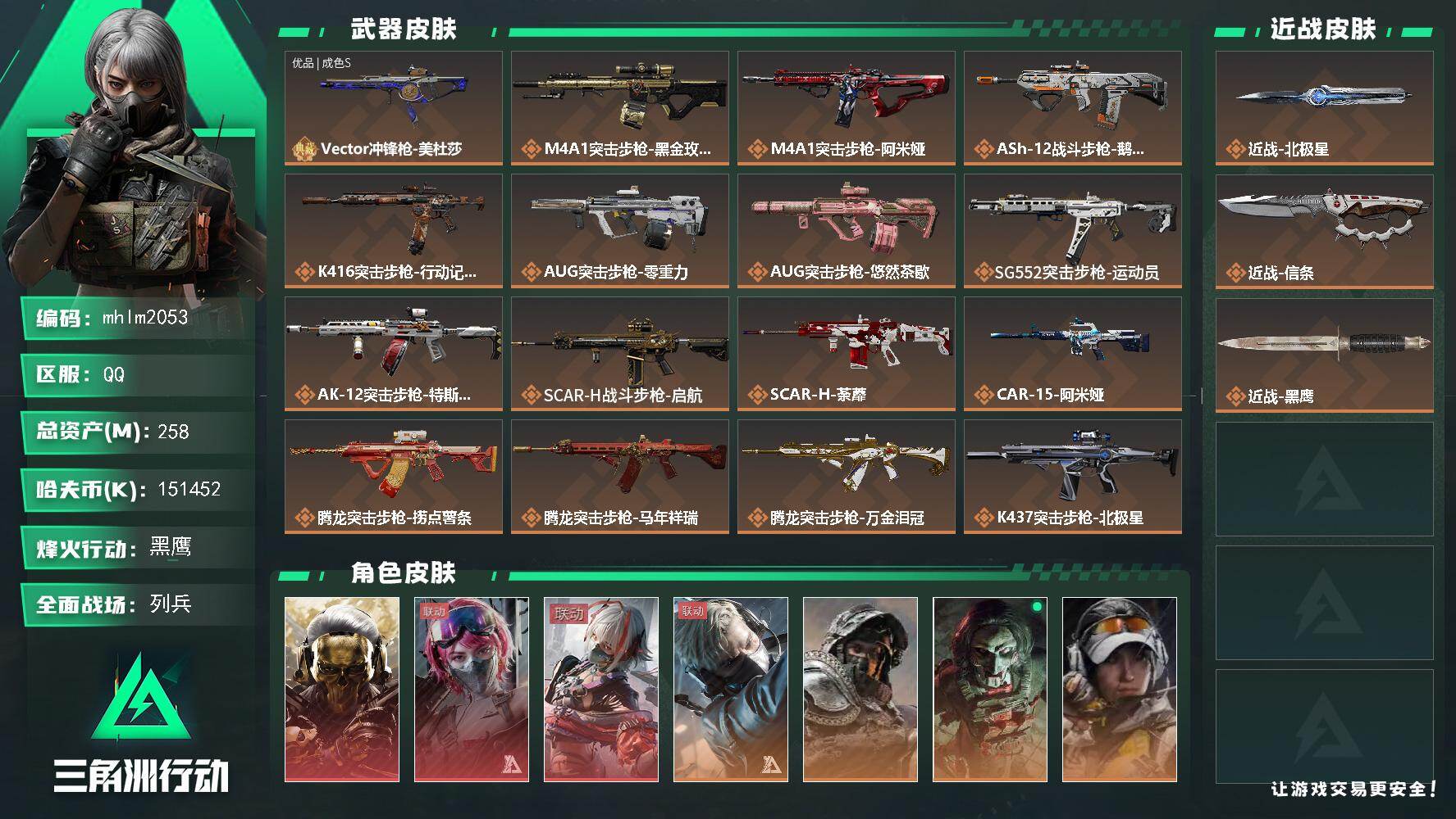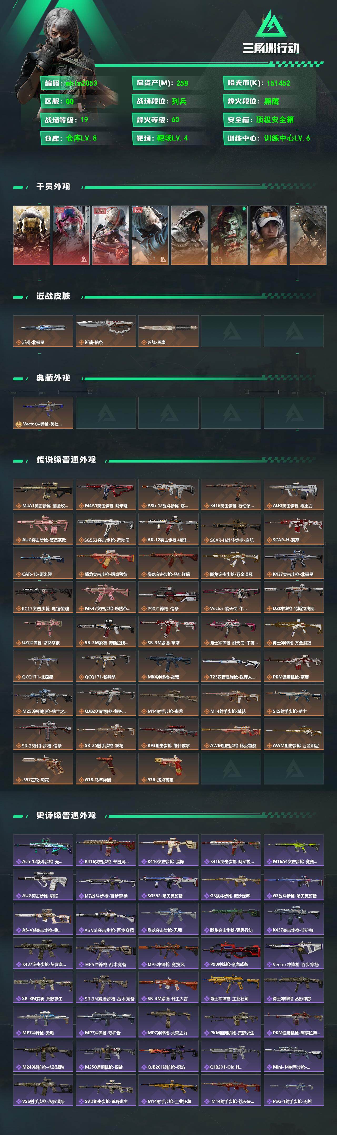 258m总资产-151452k哈夫币-60烽火等级-黑鹰-19战场等级-列兵