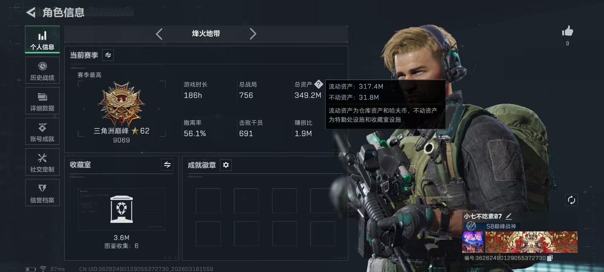 349m总资产-178884k哈夫币-60烽火等级-三角洲巅峰-1战场等级-无军衔