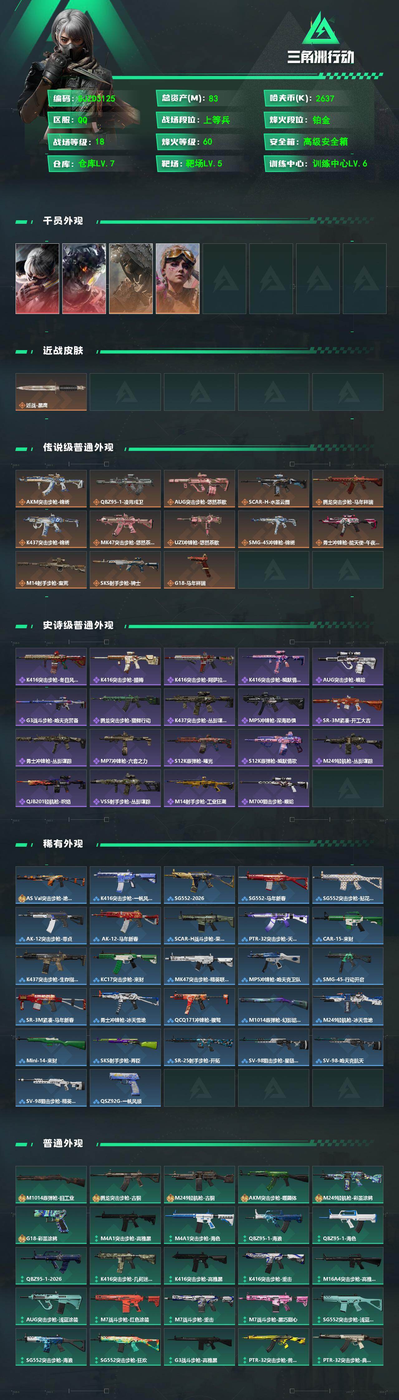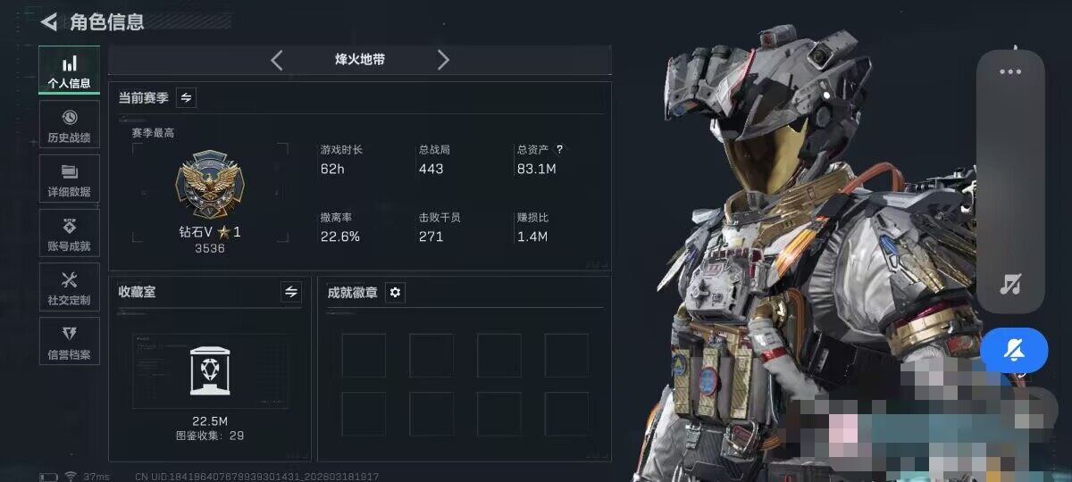 83m总资产-2637k哈夫币-60烽火等级-铂金-18战场等级-上等兵
