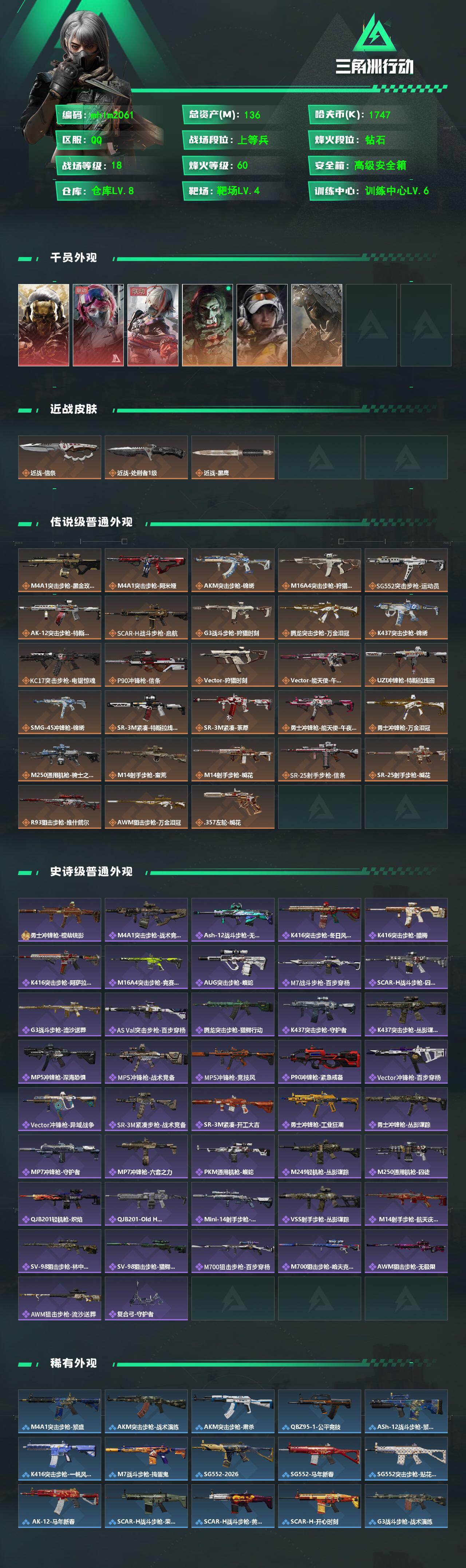 136m总资产-1747k哈夫币-60烽火等级-钻石-18战场等级-上等兵【