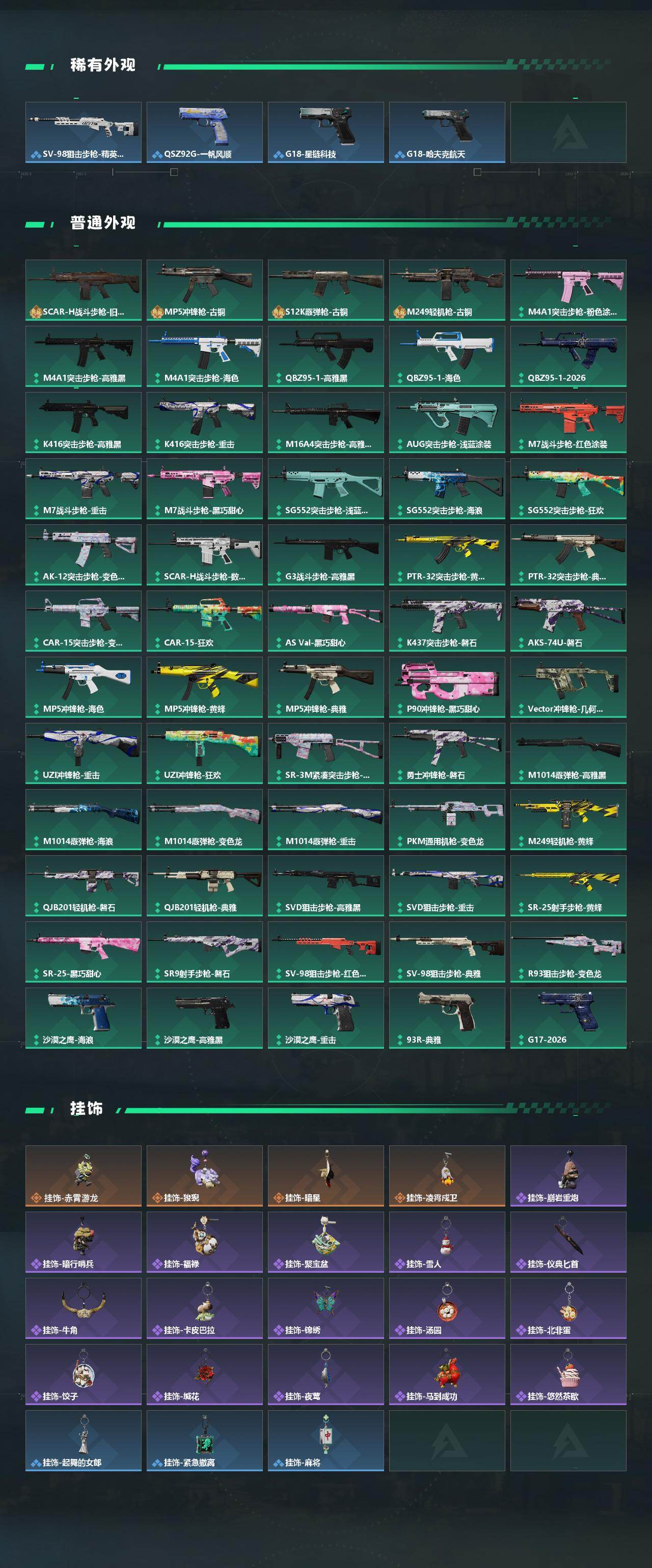 【近战皮肤】:近战-暗星,近战-怜悯,近战-处刑者1级,近战-黑鹰