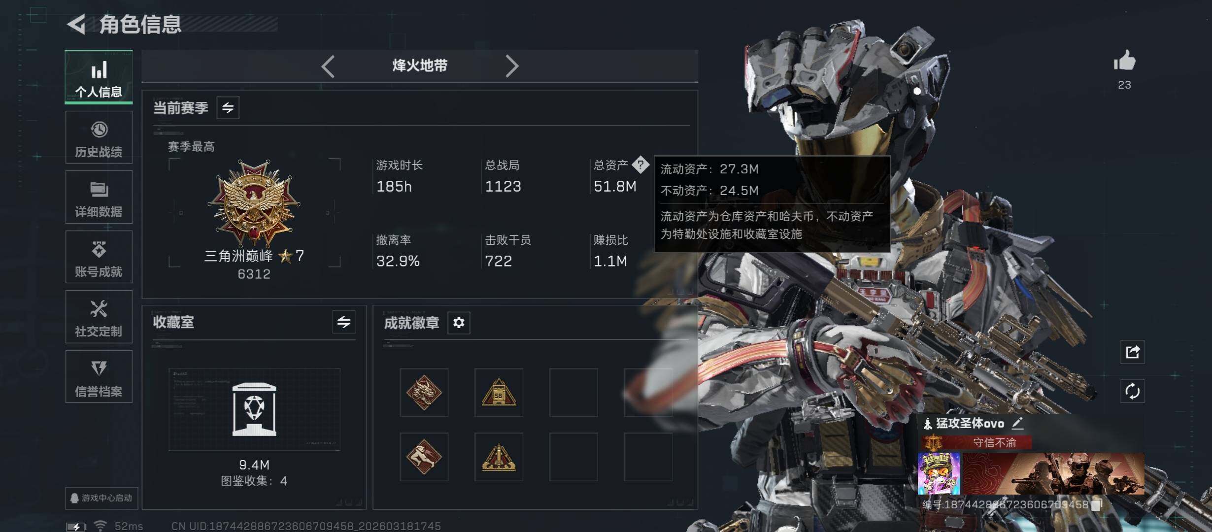 【热门皮肤组合:S8赛季顶级安全箱3X3.单红皮+三刀皮+单典藏枪皮】【凌霄戍卫+暗星+怜悯+处刑者1级+AS Val突击步枪-悬赏令(优品S)】【Q区三端互通】【无二协助处理】YXz9408-特勤处:仓库7级/靶场6级/训练中心6级-总资产51m-哈夫币3744w-烽火等级:60级