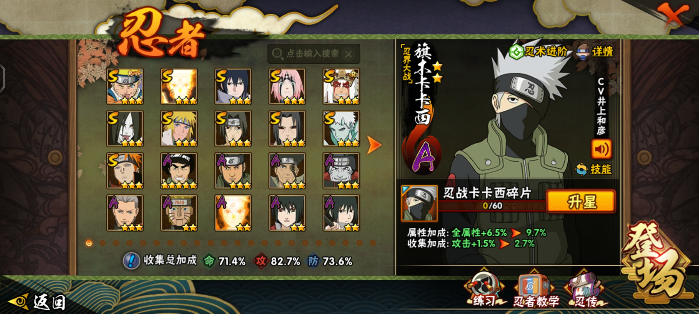 ZMHY626【可二次 V6 11S 34A 20通灵】【区服】安卓Q2941【等级】144【S级数量】11【A级数量】38【B级数量】64【C级数量】53【S级】宇智波鼬「须佐能乎」 佩恩「天道」 波风水门 宇智波鼬「秽土转生」 宇智波佐助「永恒万花筒」 宇智波带土「十尾人柱力」 大蛇丸 春野樱「忍界大战」 漩涡鸣人·宇智波佐助 自来也「舞之豪杰」 漩涡鸣人「九喇嘛连结」【A级】机械鸣人「初始形态」 宇智波佐助「万花筒写轮眼」 千代「近松十人卫」 蝎「绯流琥」 角都「秽土转生」 宇智波鼬 旗木