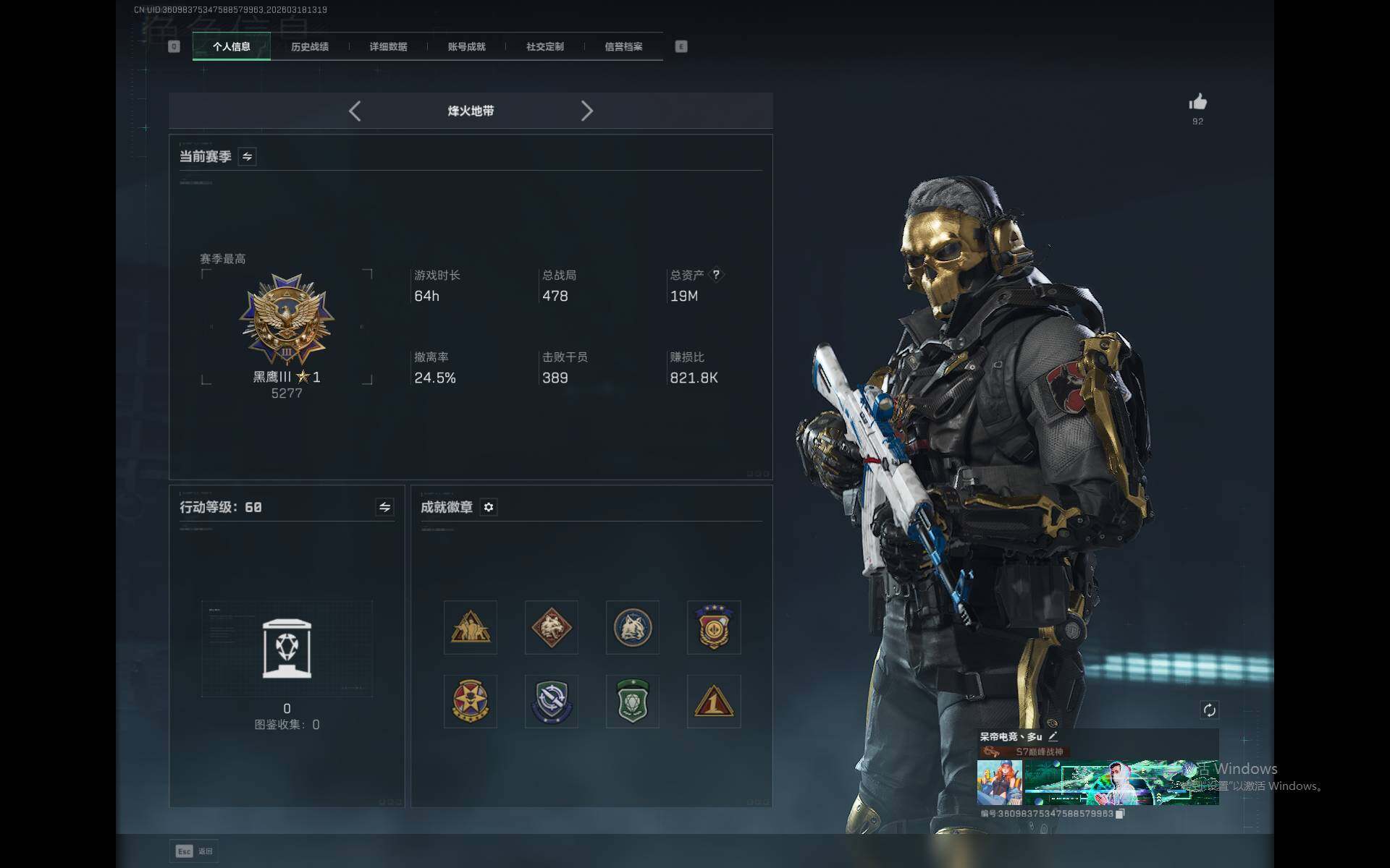 19m总资产-283k哈夫币-60烽火等级-黑鹰-28战场等级-上等兵
