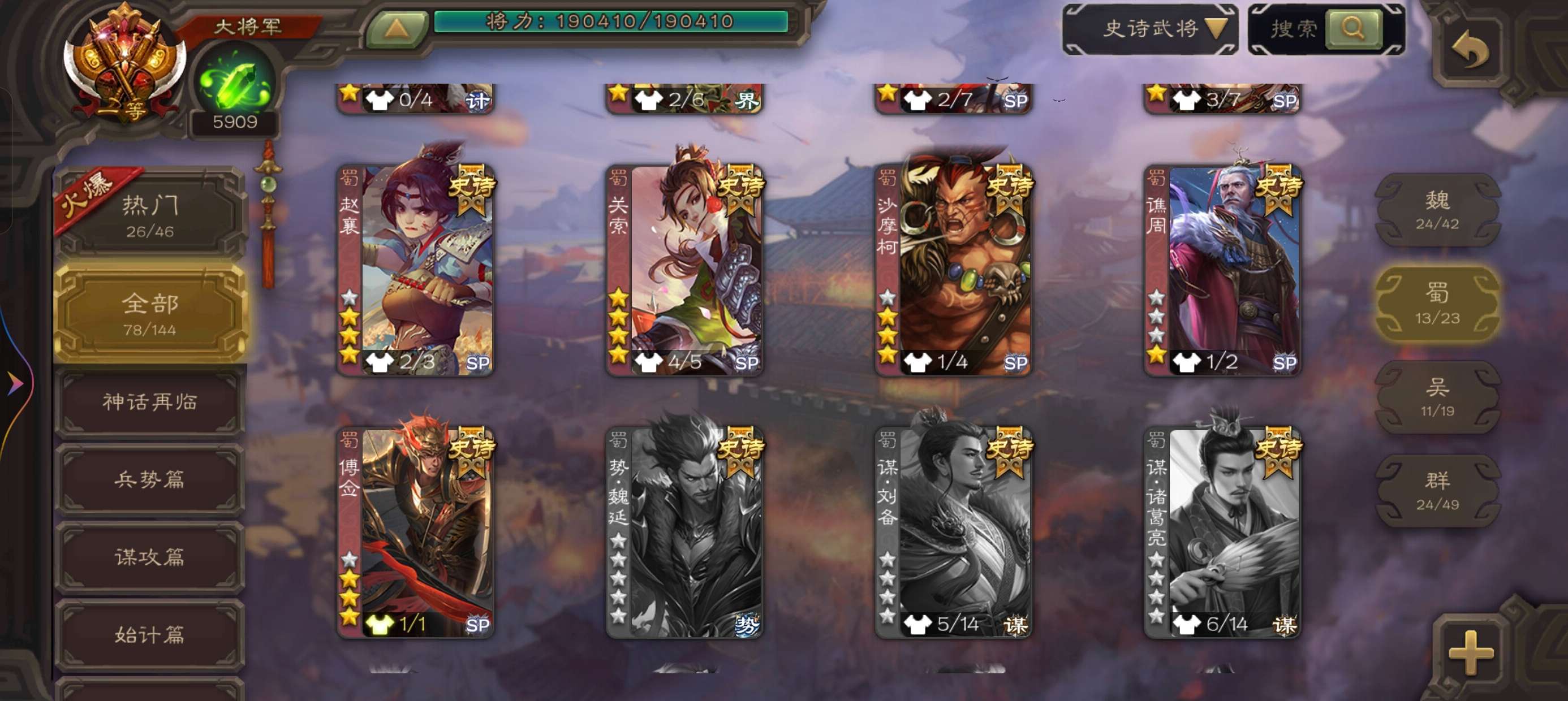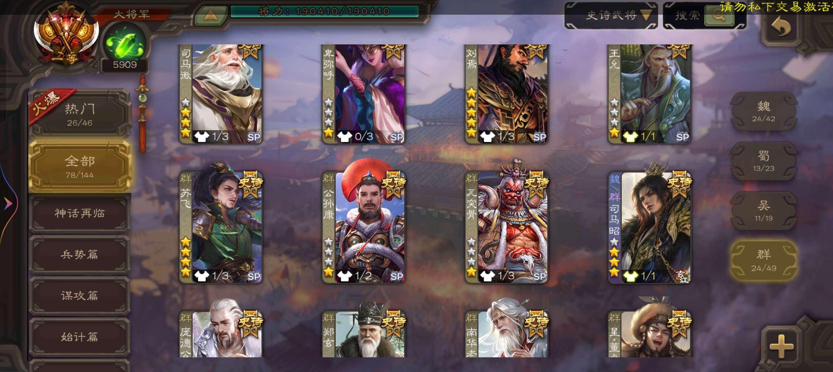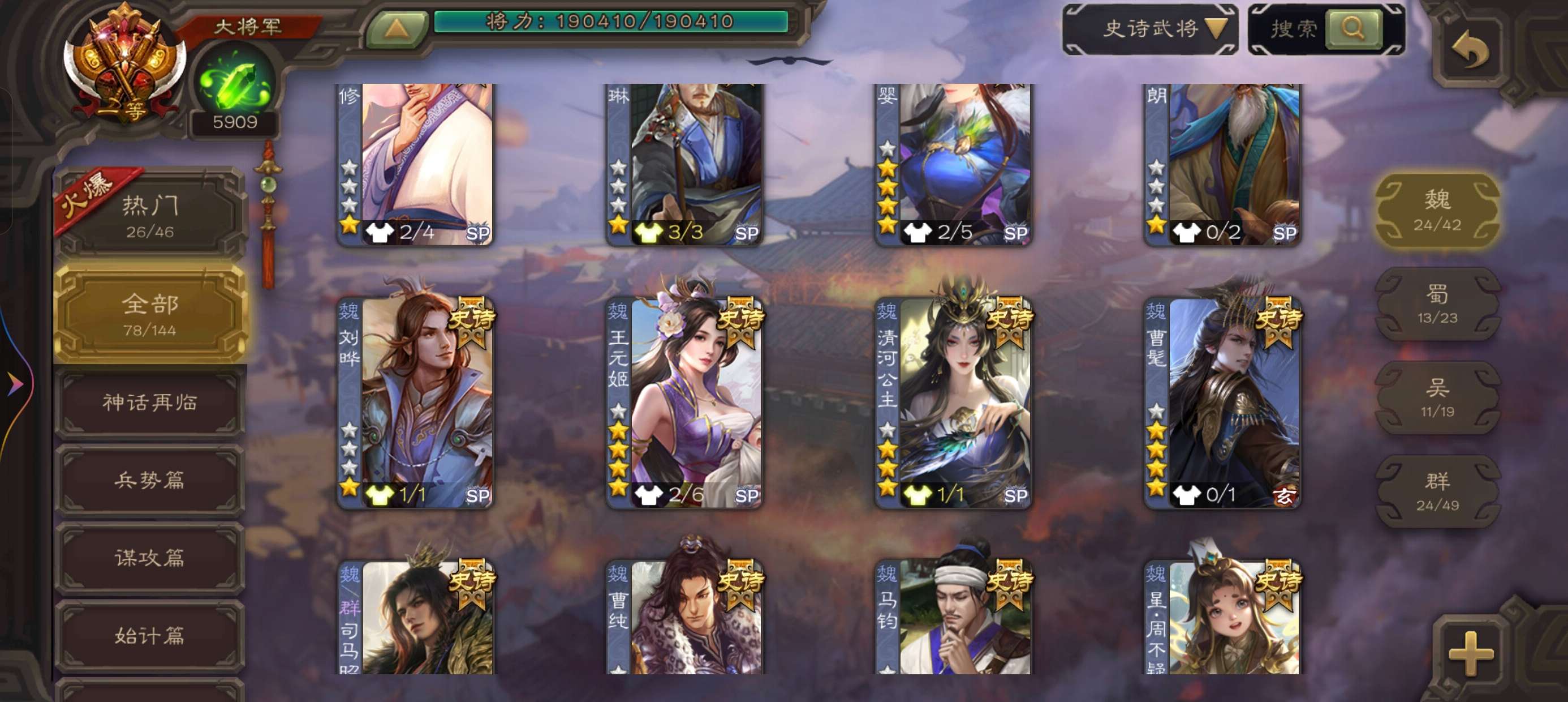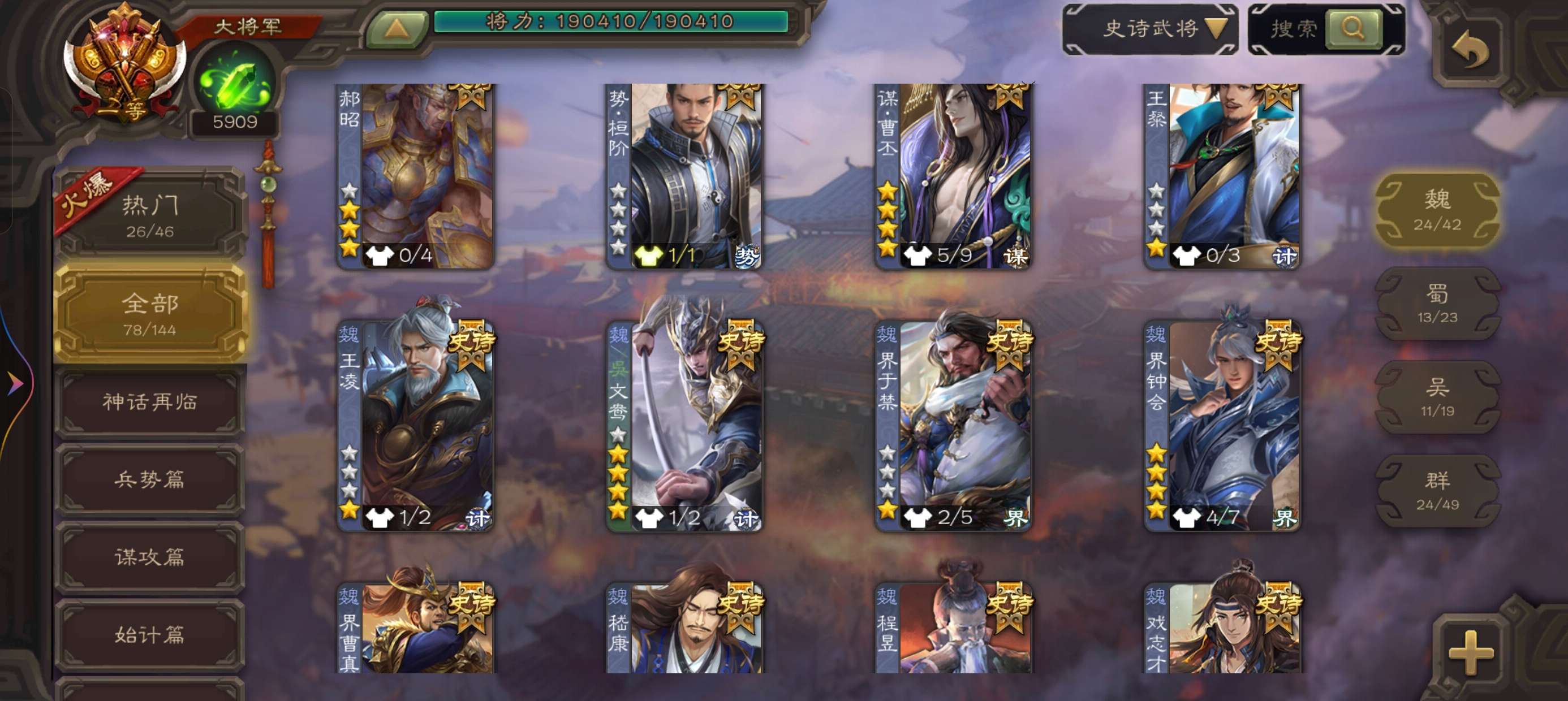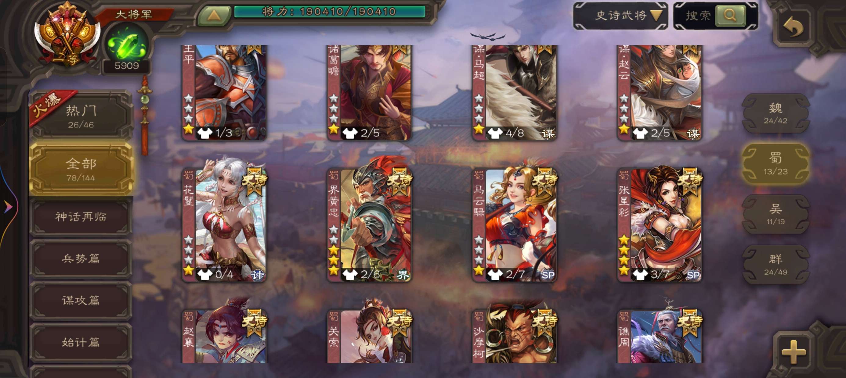 史诗武将数量: