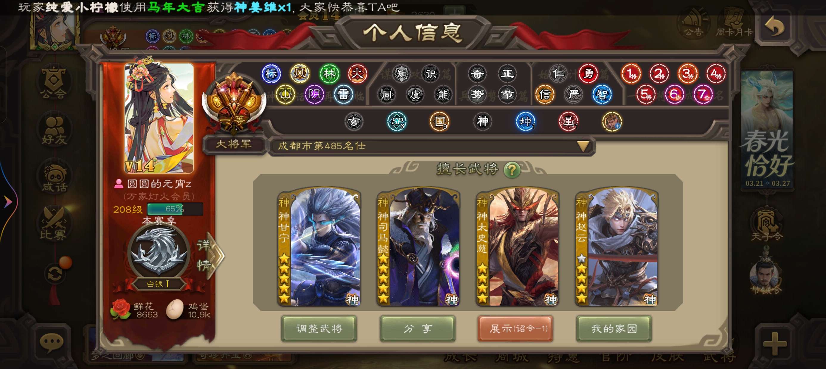 一等大将军,刘焉,神司马,神甘宁,谋曹丕,曹髦,南华老仙,势太史慈,神太史慈,文鸯等强力史诗武将