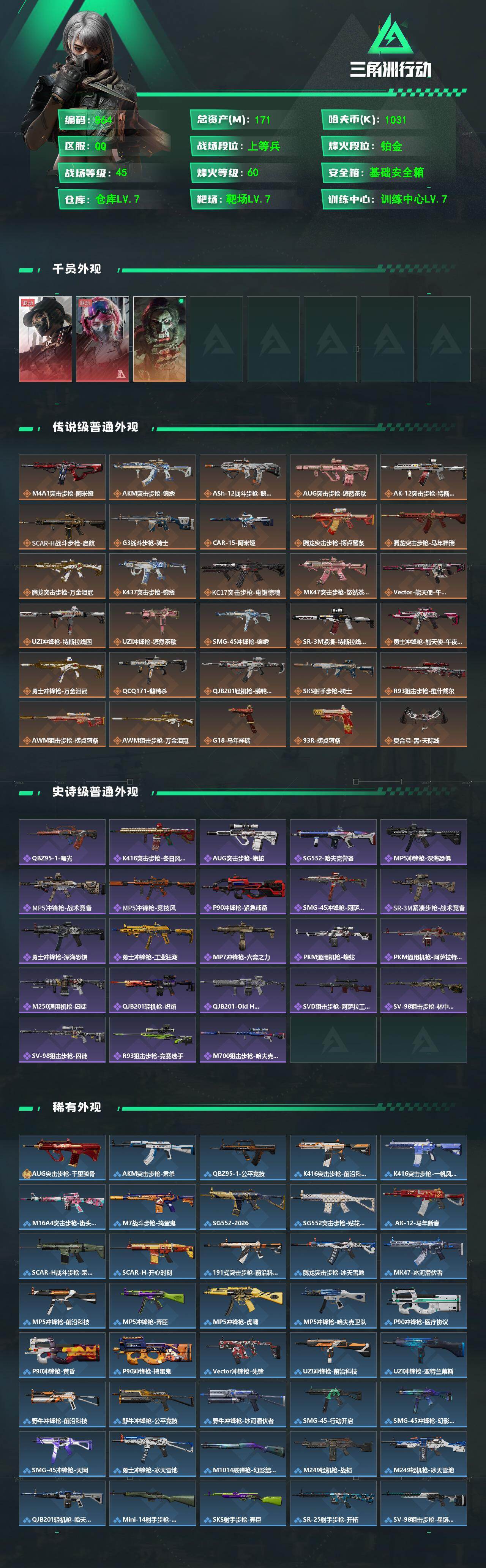 171m总资产-10314k哈夫币-60烽火等级-铂金-45战场等级-上等兵