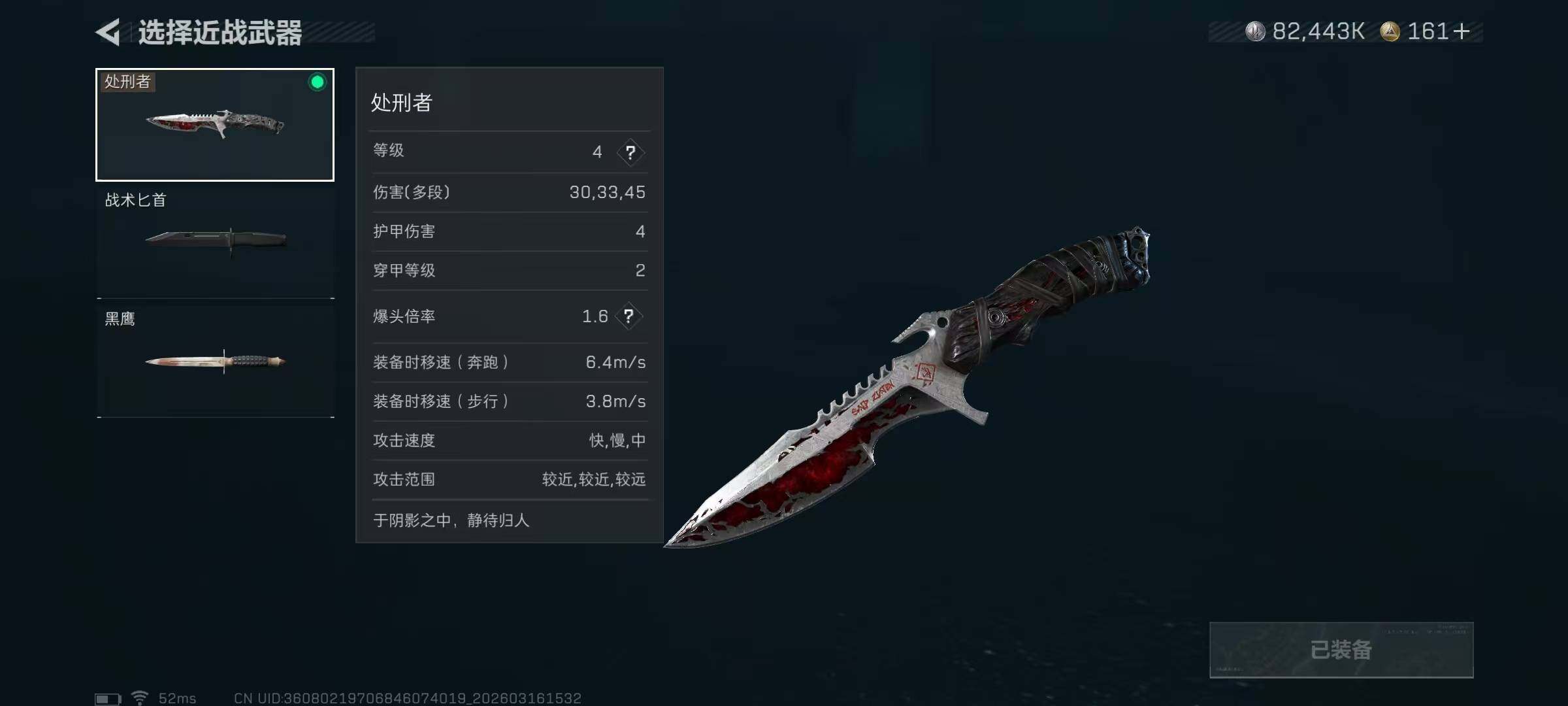 【近战皮肤】:近战-处刑者4级,近战-黑鹰