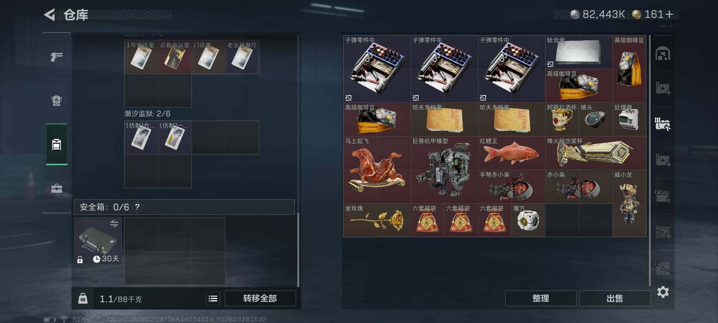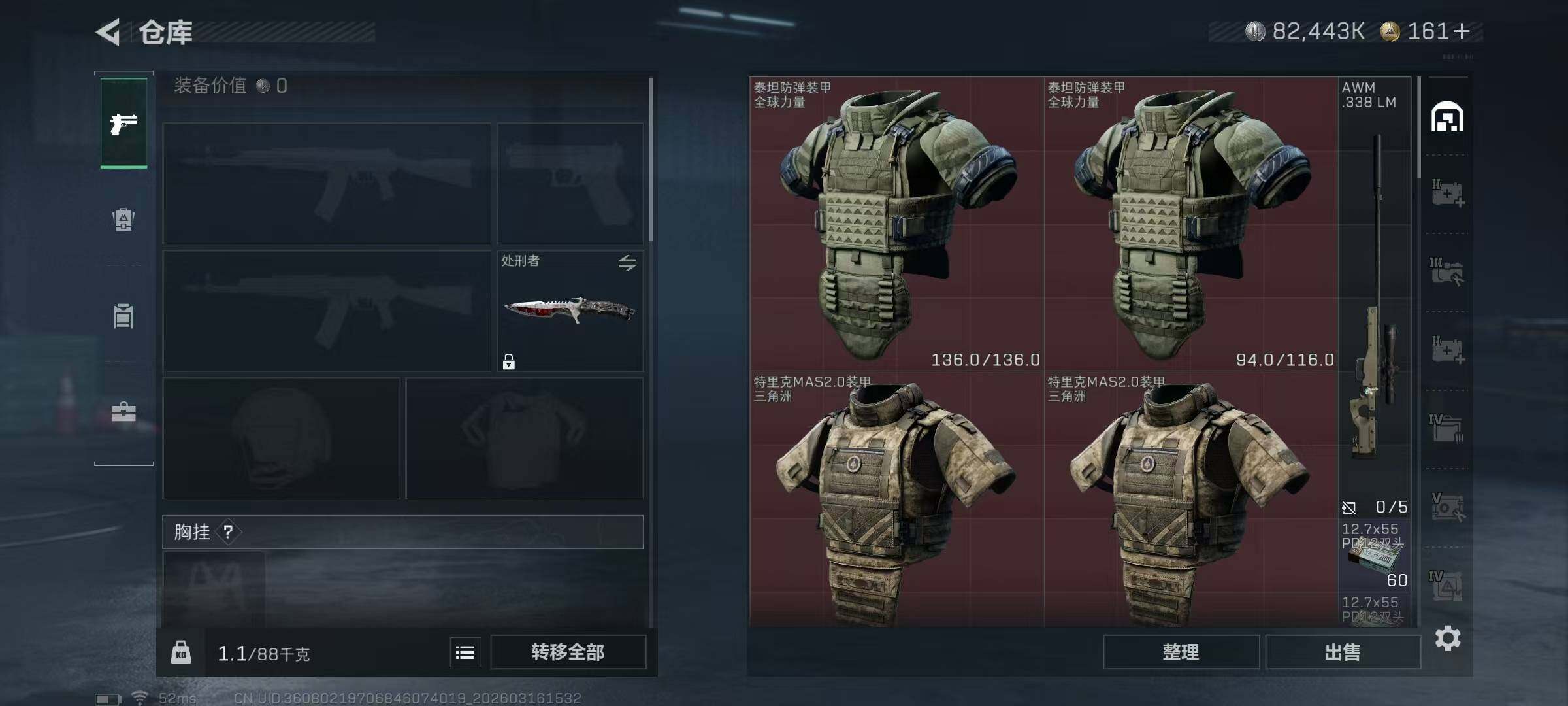 【SJ1418】【无封禁6体满负S8高级3X2带70发AW子弹】60级/总资203M/流资174M/161点卷/刀皮(4级处刑者)乌鲁鲁(荒原猎手)/8级仓库6级体力7级负重1级潜水