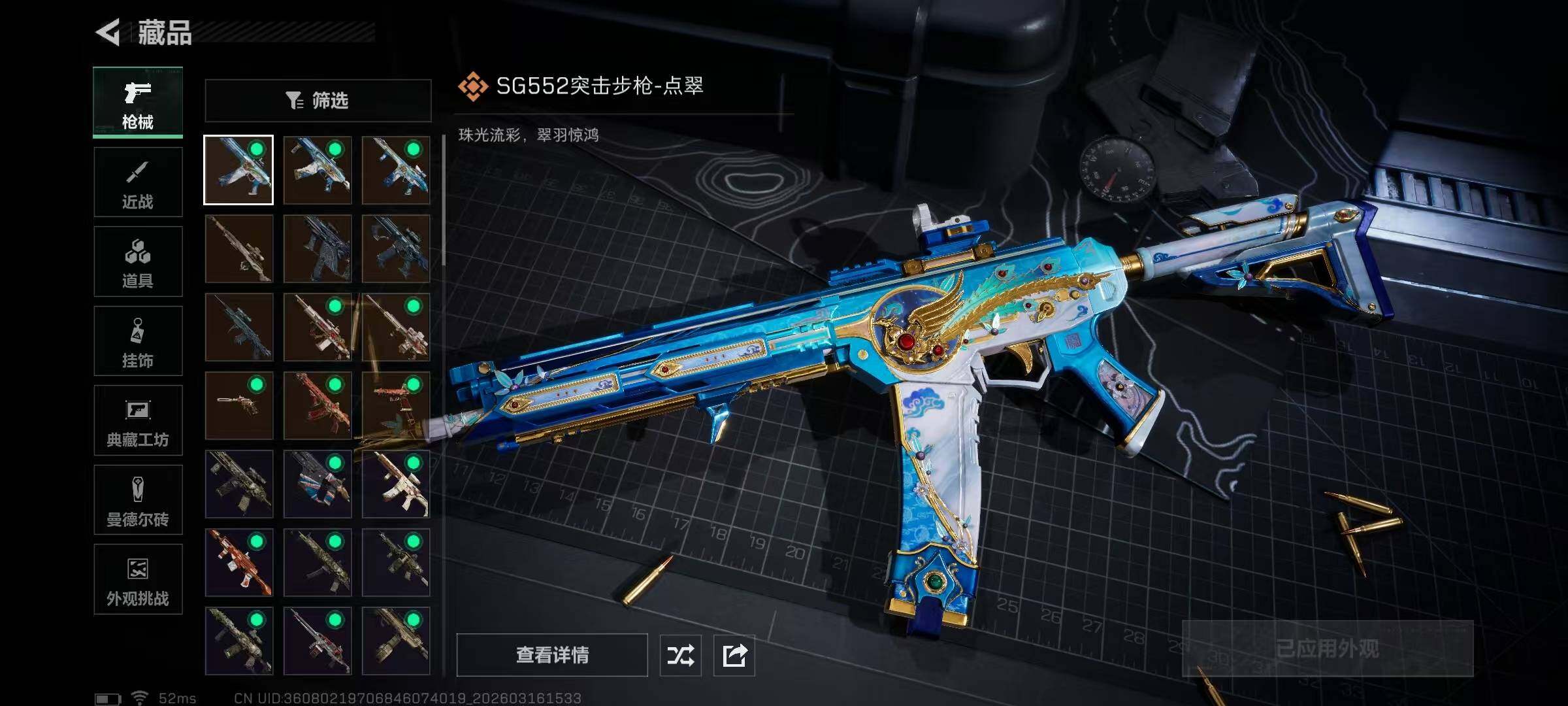 【传说外观】:SG552突击步枪-点翠,腾龙突击步枪-马年祥瑞,KC17突击步枪-点翠,Vector冲锋枪-夜莺,MK4冲锋枪-夜莺,Mi