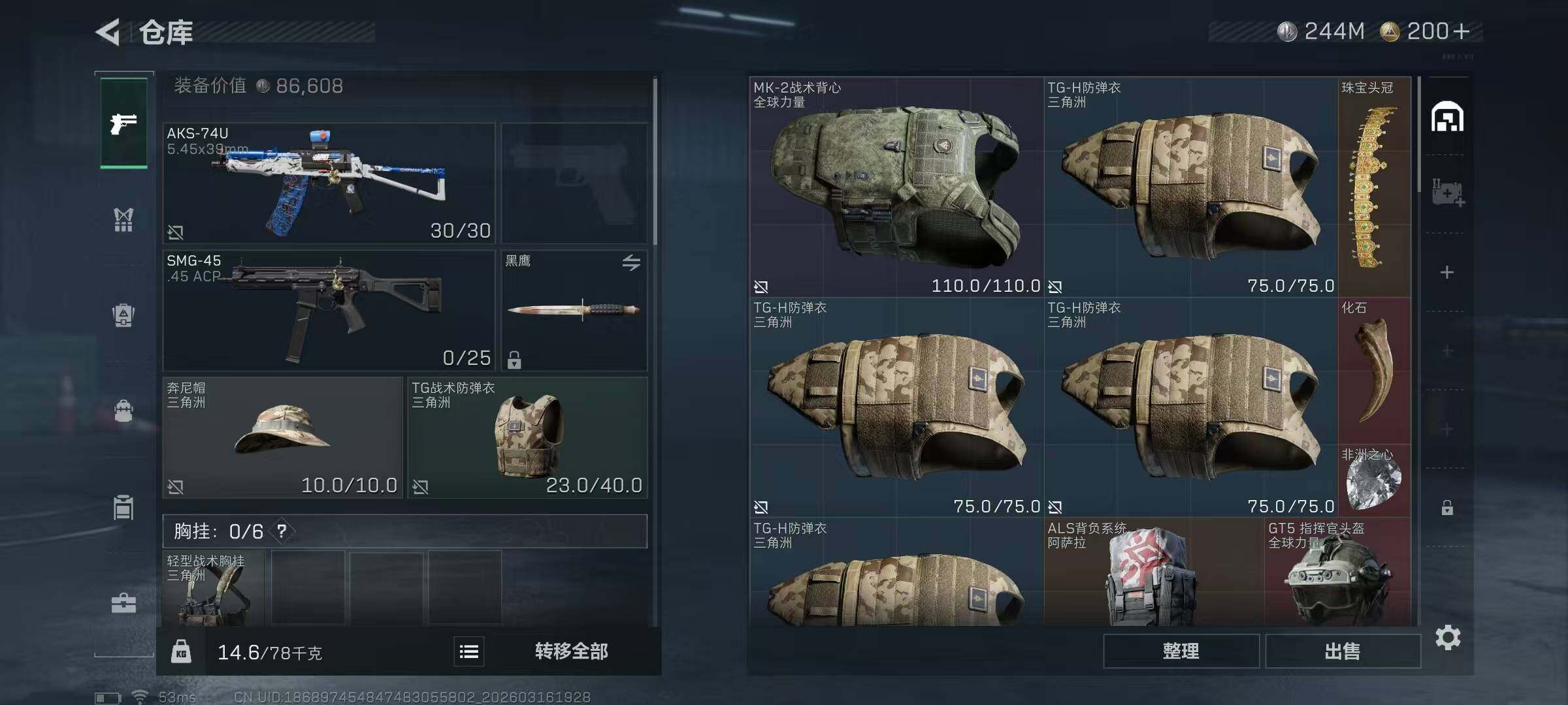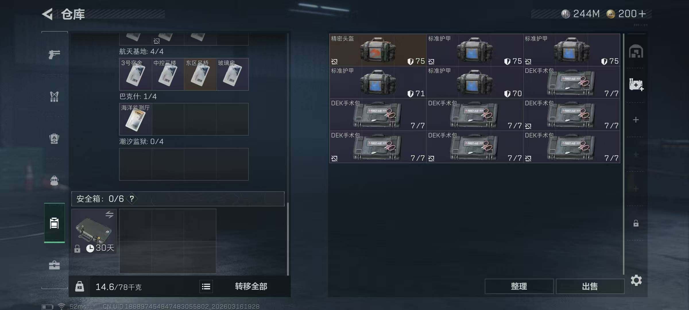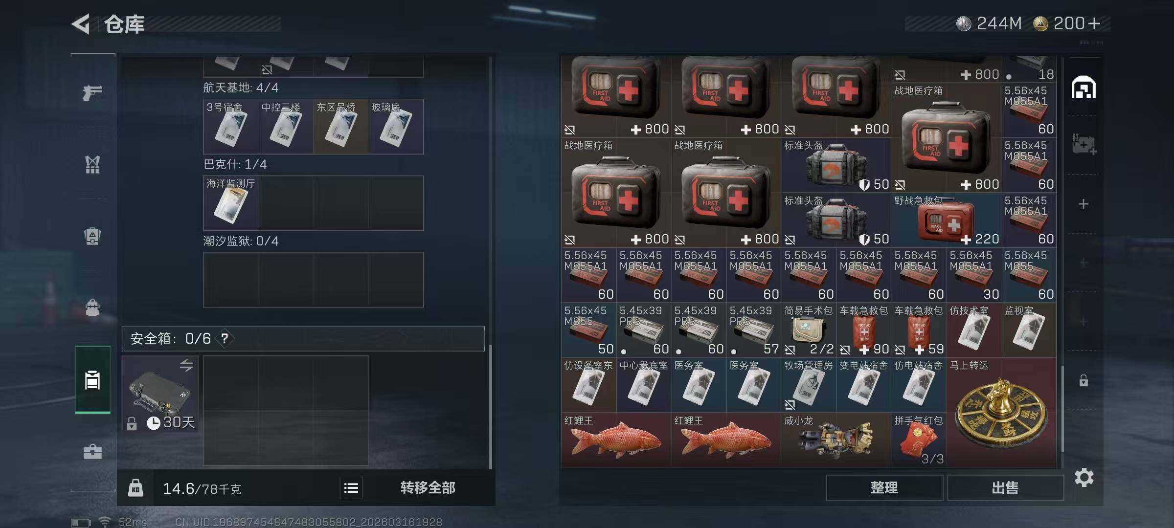 【SJ1420】【无封禁纯币244M带S8高级3X2有非洲之心】60级/总资303M/流资283M/200点卷/5级仓库6级体力4级负重2级潜水