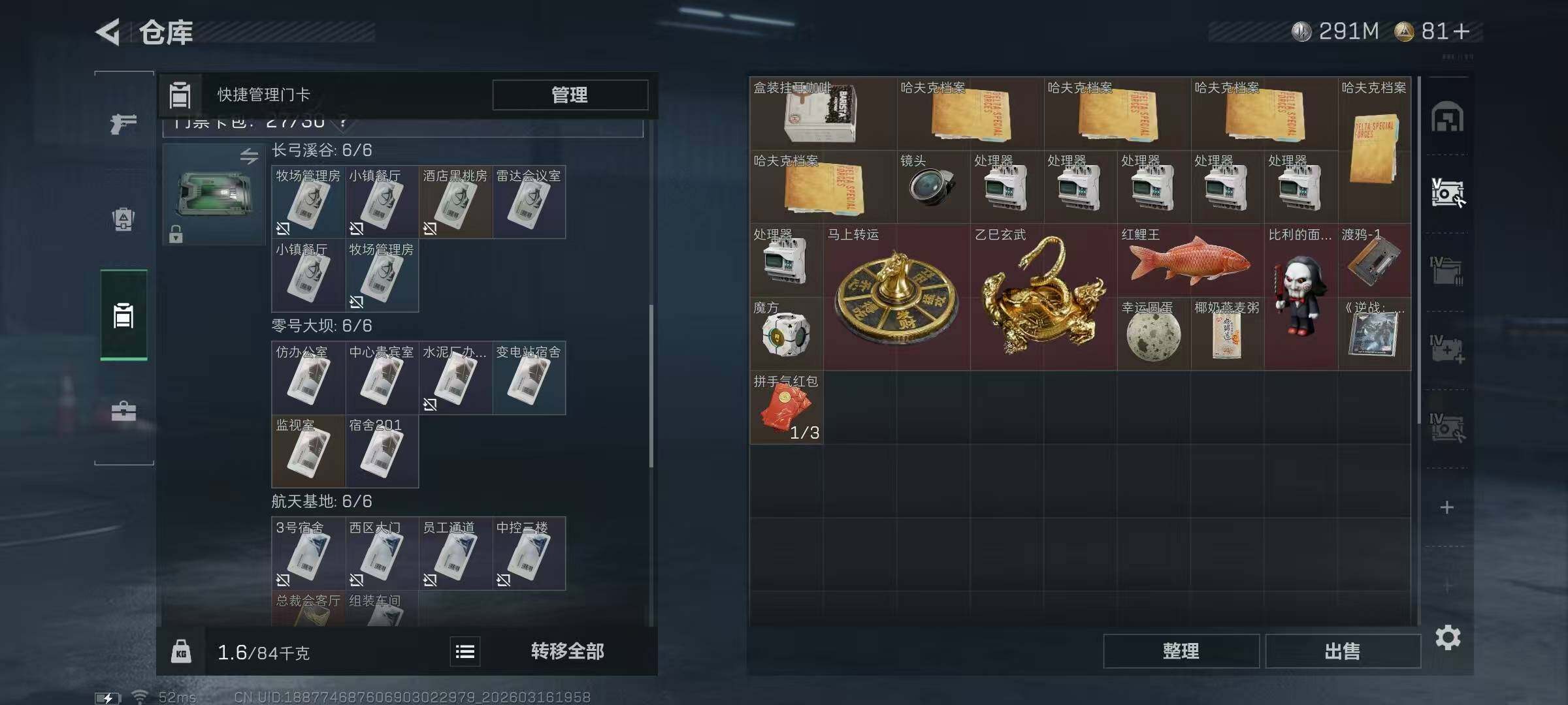【SJ1422】【暗星满体带S8高级3X2高资产】60级/总资370M/流资343M/81点卷/刀皮(暗星)红狼(电锯惊魂)蛊(不羁人生)乌鲁鲁(荒原猎手)骇爪(维什戴尔)/8级仓库7级体力6级负重2级潜水