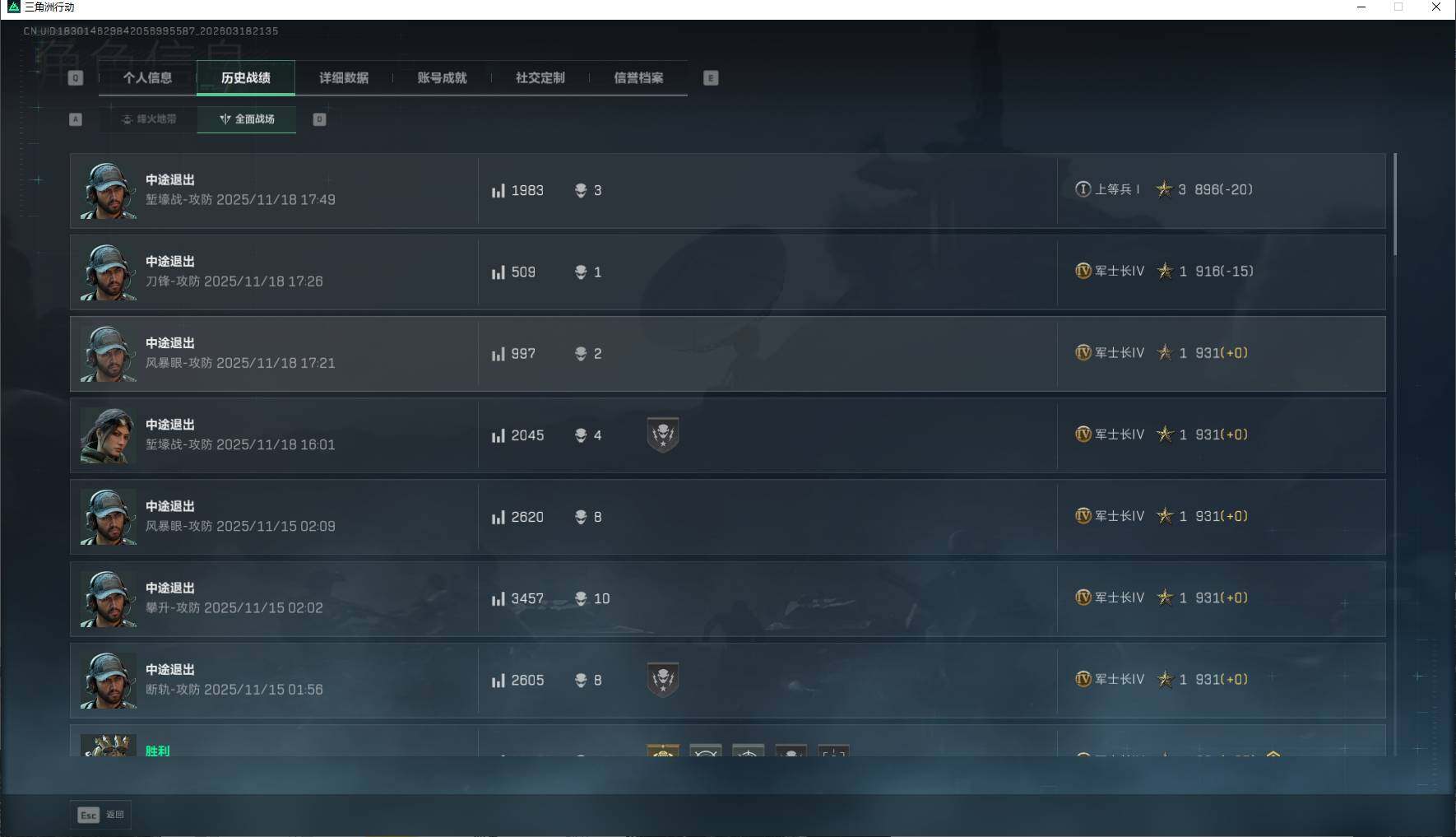 31m总资产-3613k哈夫币-60烽火等级-黑鹰-27战场等级-上等兵