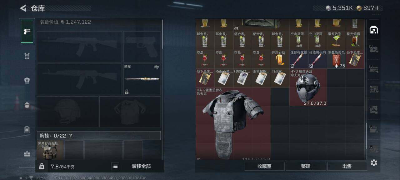 261m总资产-5351k哈夫币-60烽火等级-三角洲巅峰-50战场等级-军士